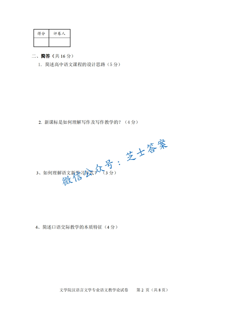 四川师范大学《语文教学论》2005-2006学年第二学期期末试卷C卷猴哥6个月前发布关注私信1.09MB8页04125四川师范大学《语文教学论》2005-2006学年第二学期期末试卷C卷此内容为付费资源,请付费后查看10积分年度会员免费月享会员免费登录购买付费资源已售 50 第1页 / 共8页 第2页 / 共8页 第3页 / 共8页 试读已结束,还剩5页,您可下载完整版后进行离线阅读 © 版权声明文章版权归作者所有,未经允许请勿转载。THE END《四川师范大学》期中期末历年真题期末试卷 喜欢就支持一下吧点赞25赞赏 分享QQ空间微博QQ好友海报分享复制链接收藏