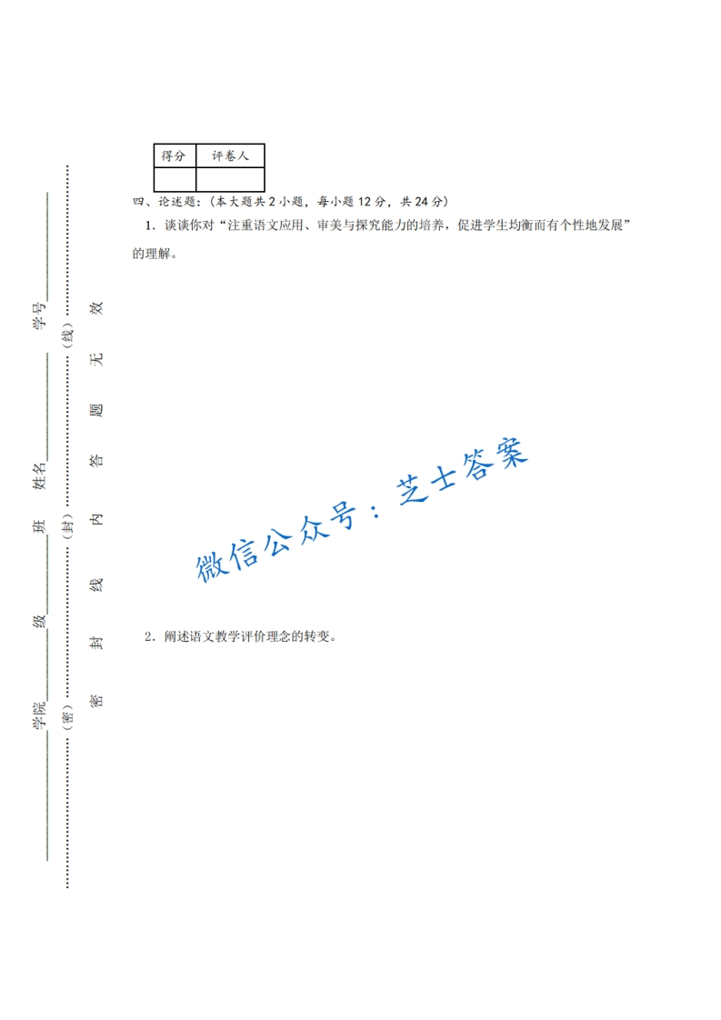四川师范大学《语文教学论》2007-2008学年第二学期期末试卷A卷猴哥6个月前发布关注私信0.56MB6页05812四川师范大学《语文教学论》2007-2008学年第二学期期末试卷A卷此内容为付费资源,请付费后查看10积分年度会员免费月享会员免费登录购买付费资源已售 50 第1页 / 共6页 第2页 / 共6页 第3页 / 共6页 试读已结束,还剩3页,您可下载完整版后进行离线阅读 © 版权声明文章版权归作者所有,未经允许请勿转载。THE END《四川师范大学》期中期末历年真题期末试卷 喜欢就支持一下吧点赞12赞赏 分享QQ空间微博QQ好友海报分享复制链接收藏