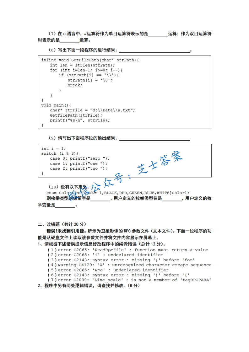 武汉大学《C语言程序设计》2012-2013学年第一学期期末试卷A卷猴哥6个月前发布关注私信0.66MB4页07050武汉大学《C语言程序设计》2012-2013学年第一学期期末试卷A卷此内容为付费资源,请付费后查看10积分年度会员免费月享会员免费登录购买付费资源已售 50 第1页 / 共4页 第2页 / 共4页 第3页 / 共4页 试读已结束,还剩1页,您可下载完整版后进行离线阅读 © 版权声明文章版权归作者所有,未经允许请勿转载。THE END《武汉大学》期中期末历年真题期末试卷 喜欢就支持一下吧点赞50赞赏 分享QQ空间微博QQ好友海报分享复制链接收藏