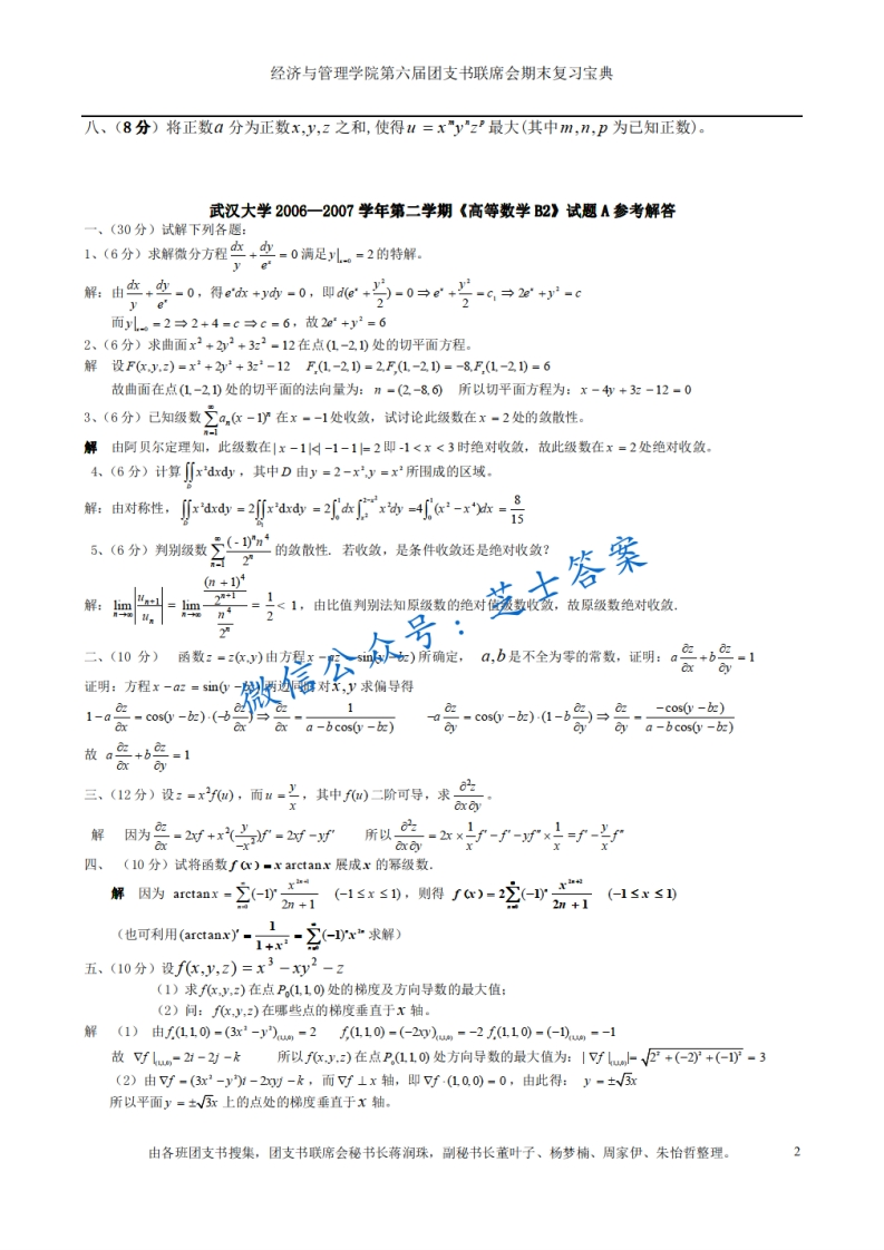 武汉大学《高等数学B》2008-2009学年第二学期期末试卷B卷猴哥6个月前发布关注私信0.70MB3页06543武汉大学《高等数学B》2008-2009学年第二学期期末试卷B卷此内容为付费资源,请付费后查看10积分年度会员免费月享会员免费登录购买付费资源已售 50 第1页 / 共3页 第2页 / 共3页 第3页 / 共3页 已完成全部阅读,共3页 © 版权声明文章版权归作者所有,未经允许请勿转载。THE END《武汉大学》期中期末历年真题期末试卷 喜欢就支持一下吧点赞43赞赏 分享QQ空间微博QQ好友海报分享复制链接收藏