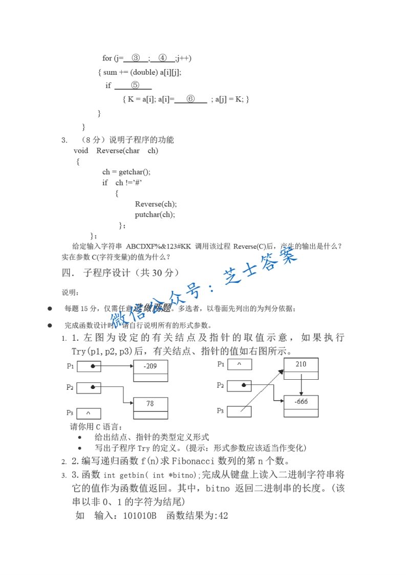 武汉大学《高级语言程序设计》2002-2003学年第一学期期末试卷猴哥6个月前发布关注私信0.67MB4页05130武汉大学《高级语言程序设计》2002-2003学年第一学期期末试卷此内容为付费资源,请付费后查看10积分年度会员免费月享会员免费登录购买付费资源已售 50 第1页 / 共4页 第2页 / 共4页 第3页 / 共4页 试读已结束,还剩1页,您可下载完整版后进行离线阅读 © 版权声明文章版权归作者所有,未经允许请勿转载。THE END《武汉大学》期中期末历年真题期末试卷 喜欢就支持一下吧点赞30赞赏 分享QQ空间微博QQ好友海报分享复制链接收藏