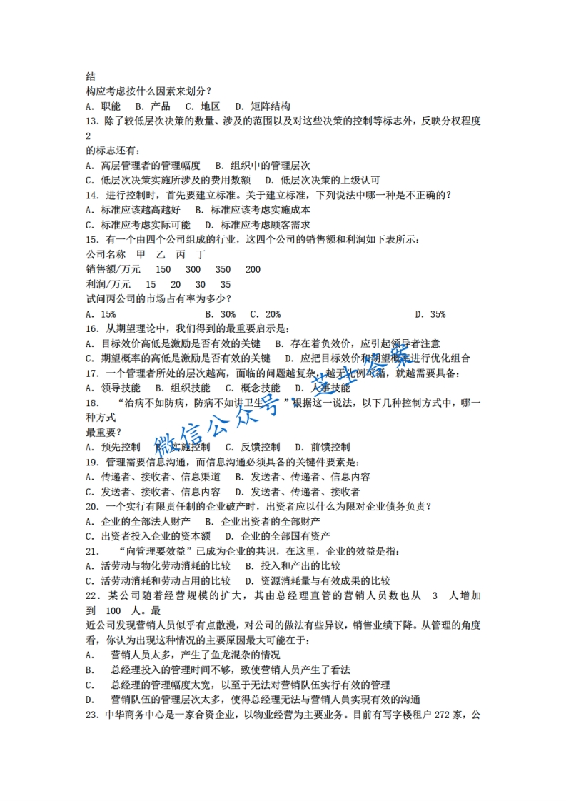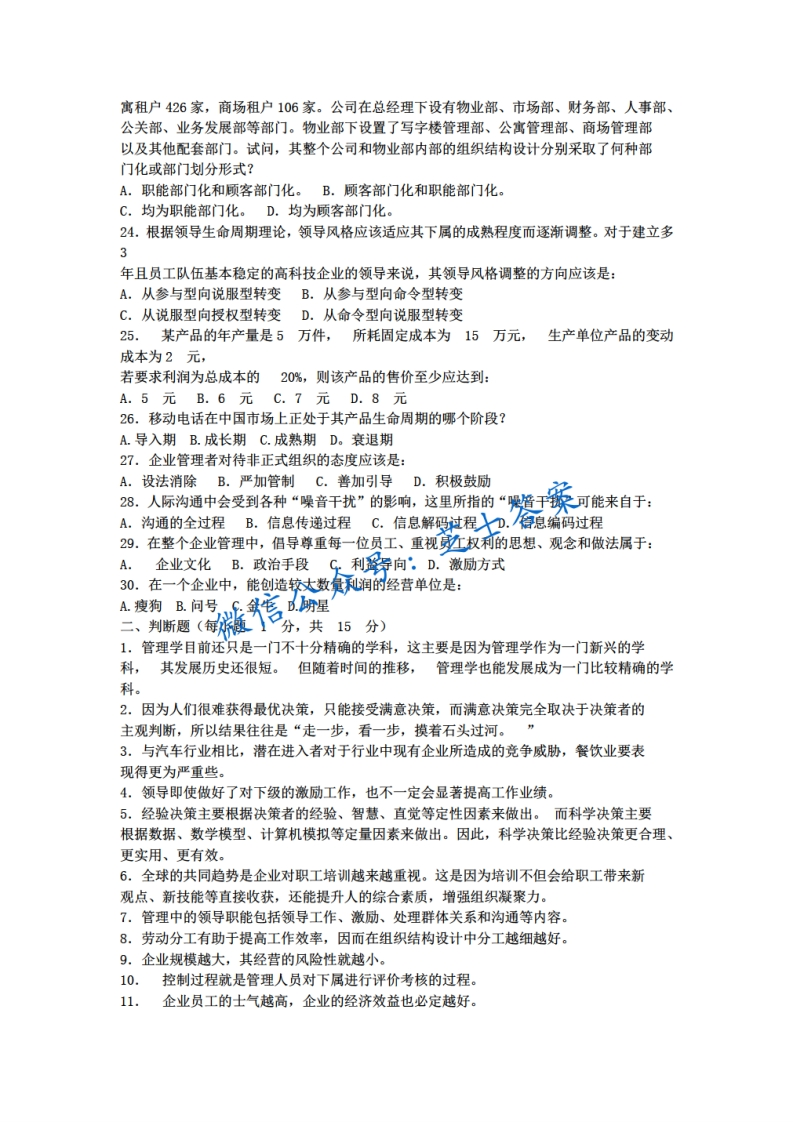 武汉大学《管理学》2004-2005学年第一学期期末试卷猴哥6个月前发布关注私信2.84MB8页04125武汉大学《管理学》2004-2005学年第一学期期末试卷此内容为付费资源,请付费后查看10积分年度会员免费月享会员免费登录购买付费资源已售 50 第1页 / 共8页 第2页 / 共8页 第3页 / 共8页 试读已结束,还剩5页,您可下载完整版后进行离线阅读 © 版权声明文章版权归作者所有,未经允许请勿转载。THE END《武汉大学》期中期末历年真题期末试卷 喜欢就支持一下吧点赞25赞赏 分享QQ空间微博QQ好友海报分享复制链接收藏