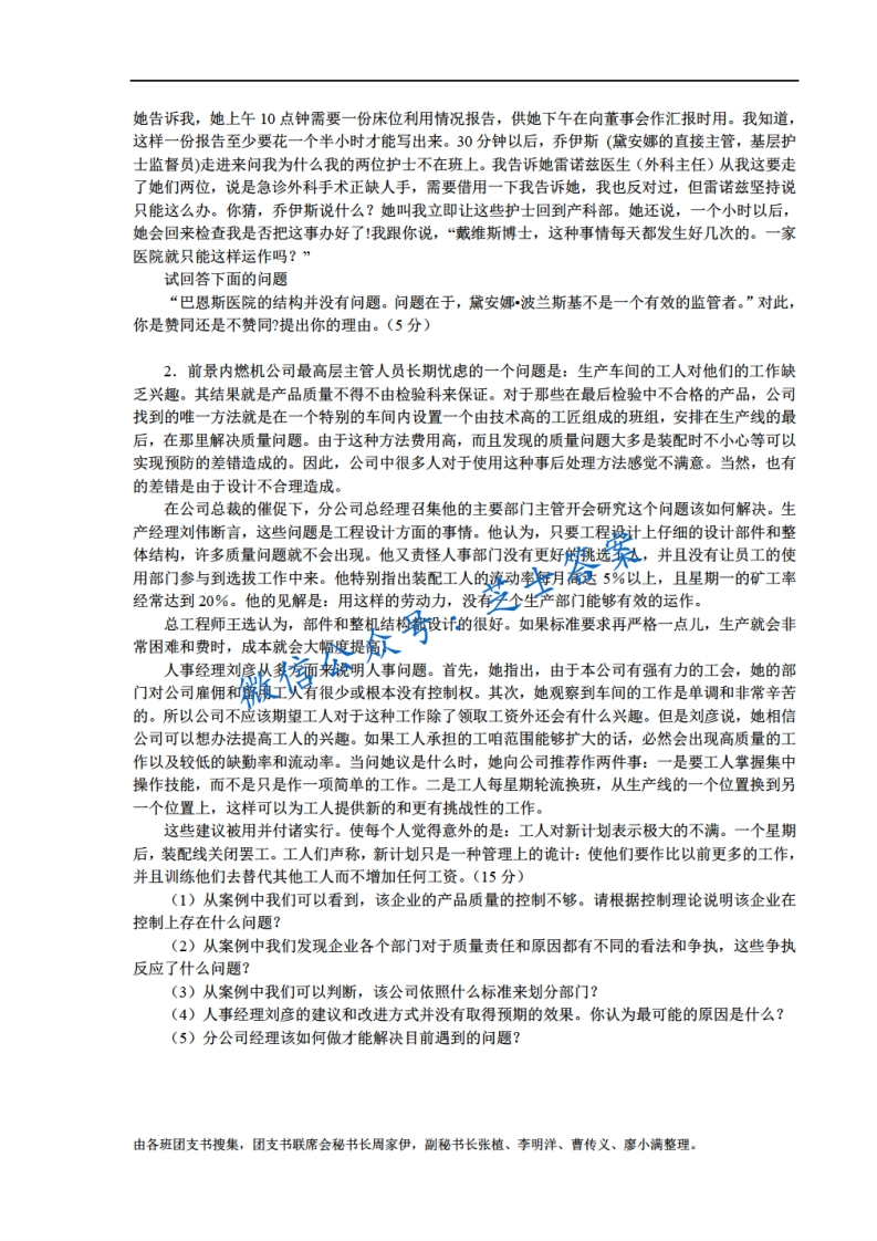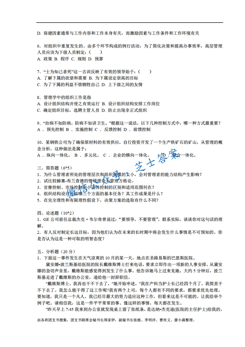 武汉大学《管理学》2008-2009学年第一学期期末试卷A卷-学习资源网 - 分享优质学习资料