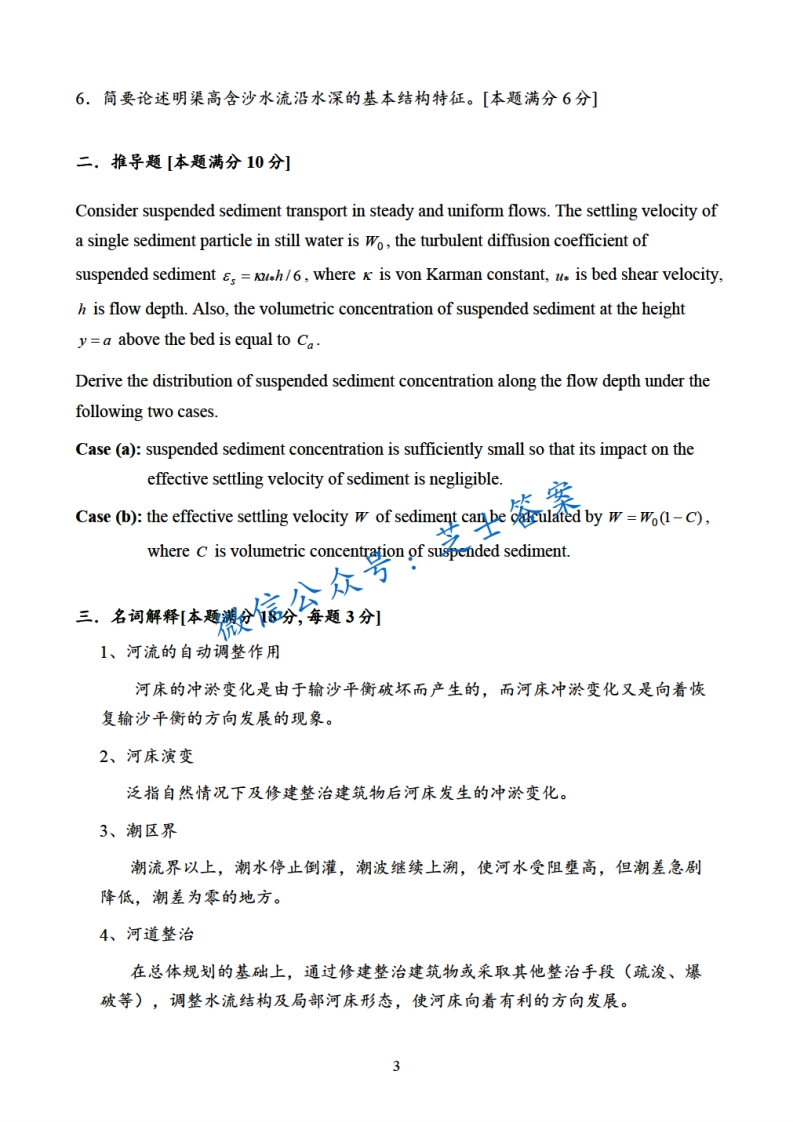 武汉大学《河流动力学》2010-2011学年第一学期期末试卷A卷-学习资源网 - 分享优质学习资料