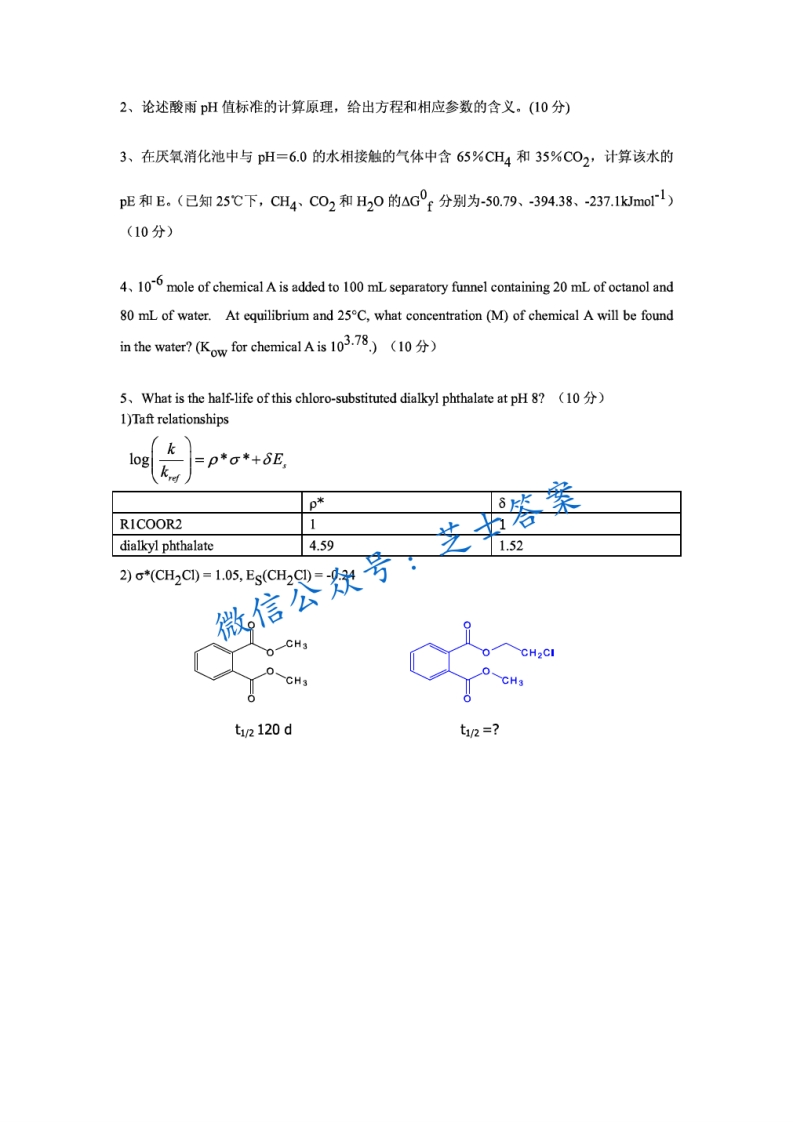 武汉大学《环境化学》2004-2005学年第一学期期末试卷A卷-学习资源网 - 分享优质学习资料