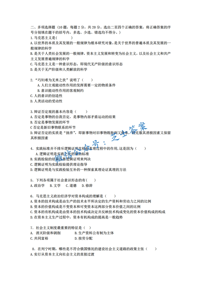 武汉大学《马克思主义基本原理概论》2008-2009学年第二学期期末试卷A卷猴哥6个月前发布关注私信2.97MB8页07433武汉大学《马克思主义基本原理概论》2008-2009学年第二学期期末试卷A卷此内容为付费资源,请付费后查看10积分年度会员免费月享会员免费登录购买付费资源已售 50 第1页 / 共8页 第2页 / 共8页 第3页 / 共8页 试读已结束,还剩5页,您可下载完整版后进行离线阅读 © 版权声明文章版权归作者所有,未经允许请勿转载。THE END《武汉大学》期中期末历年真题期末试卷 喜欢就支持一下吧点赞33赞赏 分享QQ空间微博QQ好友海报分享复制链接收藏