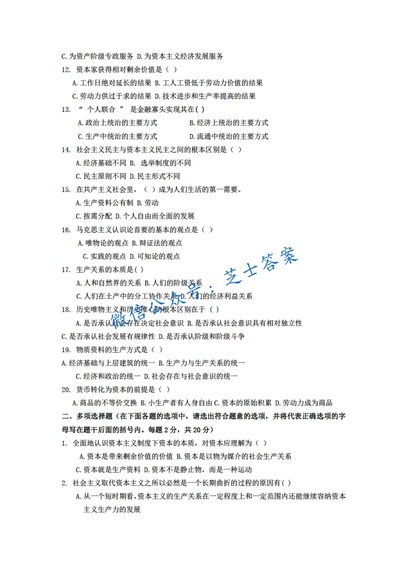 武汉大学《马克思主义基本原理概论》2009-2010学年期末试卷A卷猴哥6个月前发布关注私信2.81MB8页06326武汉大学《马克思主义基本原理概论》2009-2010学年期末试卷A卷此内容为付费资源,请付费后查看10积分年度会员免费月享会员免费登录购买付费资源已售 50 第1页 / 共8页 第2页 / 共8页 第3页 / 共8页 试读已结束,还剩5页,您可下载完整版后进行离线阅读 © 版权声明文章版权归作者所有,未经允许请勿转载。THE END《武汉大学》期中期末历年真题期末试卷 喜欢就支持一下吧点赞26赞赏 分享QQ空间微博QQ好友海报分享复制链接收藏