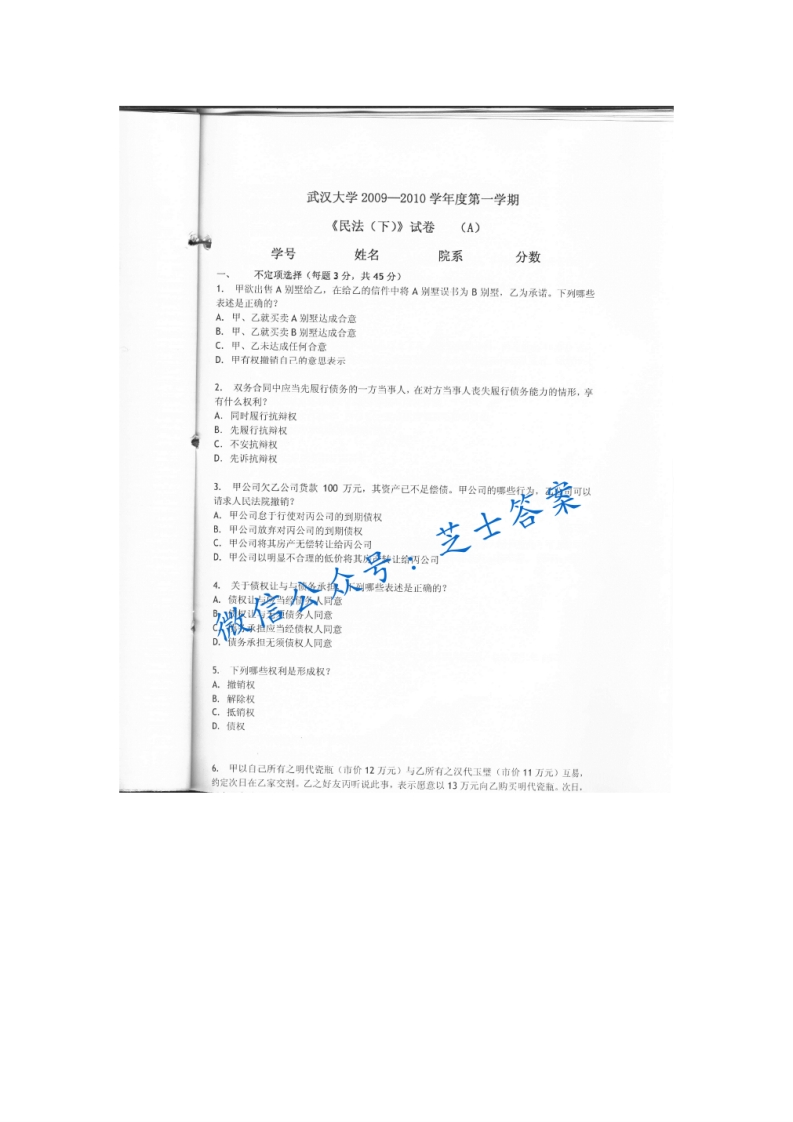武汉大学《民法》2009-2010学年第一学期期末试卷A卷猴哥6个月前发布关注私信1.47MB5页05650武汉大学《民法》2009-2010学年第一学期期末试卷A卷此内容为付费资源,请付费后查看10积分年度会员免费月享会员免费登录购买付费资源已售 50 第1页 / 共5页 第2页 / 共5页 第3页 / 共5页 试读已结束,还剩2页,您可下载完整版后进行离线阅读 © 版权声明文章版权归作者所有,未经允许请勿转载。THE END《武汉大学》期中期末历年真题期末试卷 喜欢就支持一下吧点赞50赞赏 分享QQ空间微博QQ好友海报分享复制链接收藏