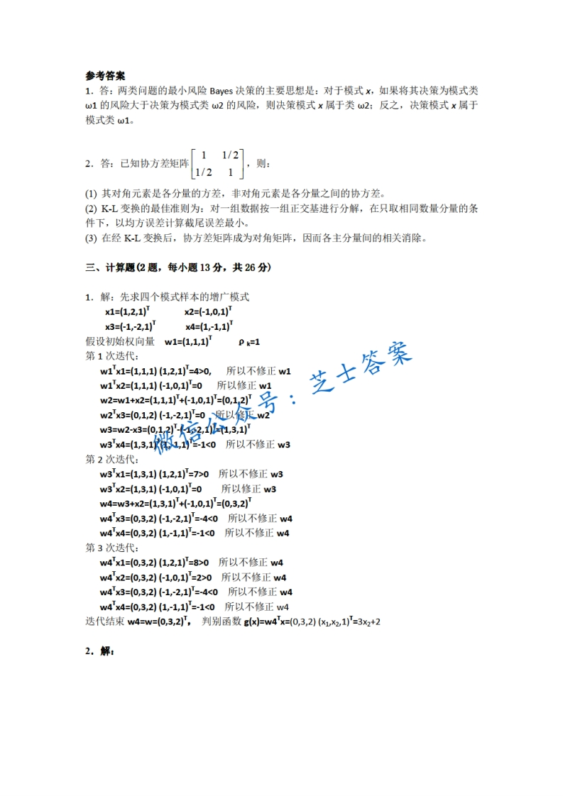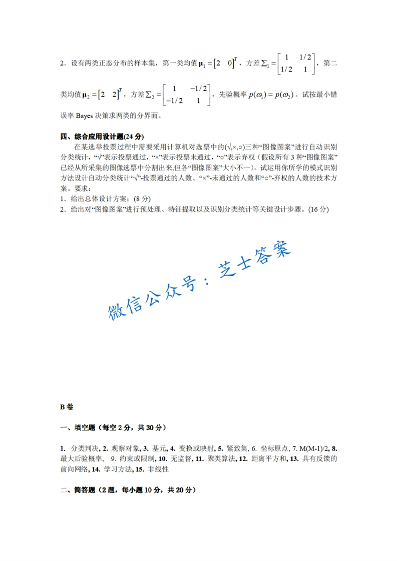 武汉大学《模式识别》2010-2011学年第二学期期末试卷B卷-学习资源网 - 分享优质学习资料