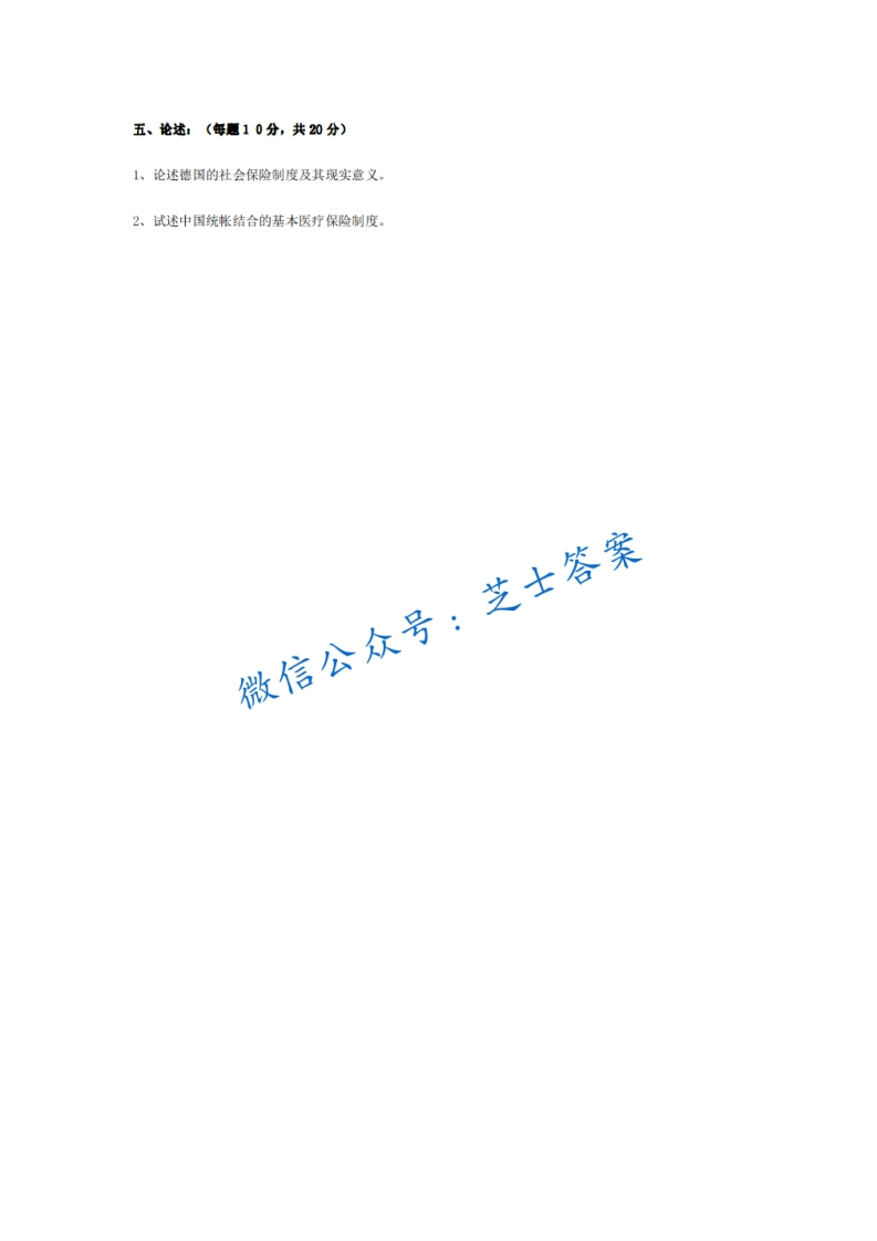 武汉大学《社会保险学》2002-2003学年第二学期期末试卷猴哥6个月前发布关注私信0.46MB3页03232武汉大学《社会保险学》2002-2003学年第二学期期末试卷此内容为付费资源,请付费后查看10积分年度会员免费月享会员免费登录购买付费资源已售 50 第1页 / 共3页 第2页 / 共3页 第3页 / 共3页 已完成全部阅读,共3页 © 版权声明文章版权归作者所有,未经允许请勿转载。THE END《武汉大学》期中期末历年真题期末试卷 喜欢就支持一下吧点赞32赞赏 分享QQ空间微博QQ好友海报分享复制链接收藏
