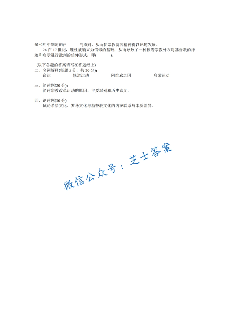 武汉大学《西方文化概论》2002-2003学年第一学期期末试卷猴哥6个月前发布关注私信0.56MB2页09346武汉大学《西方文化概论》2002-2003学年第一学期期末试卷此内容为付费资源,请付费后查看10积分年度会员免费月享会员免费登录购买付费资源已售 50 第1页 / 共2页 第2页 / 共2页 已完成全部阅读,共2页 © 版权声明文章版权归作者所有,未经允许请勿转载。THE END《武汉大学》期中期末历年真题期末试卷 喜欢就支持一下吧点赞46赞赏 分享QQ空间微博QQ好友海报分享复制链接收藏