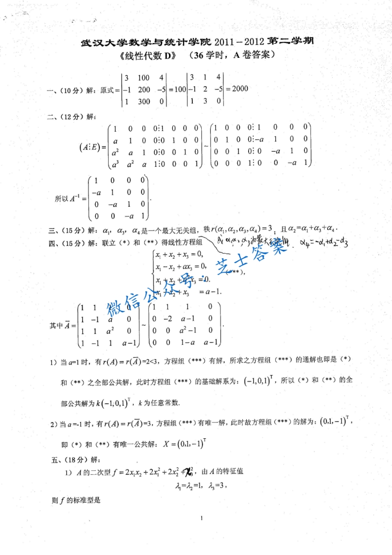 武汉大学《线性代数》2011-2012学年第二学期期末试卷猴哥6个月前发布关注私信0.99MB3页06366武汉大学《线性代数》2011-2012学年第二学期期末试卷此内容为付费资源,请付费后查看10积分年度会员免费月享会员免费登录购买付费资源已售 50 第1页 / 共3页 第2页 / 共3页 第3页 / 共3页 已完成全部阅读,共3页 © 版权声明文章版权归作者所有,未经允许请勿转载。THE END《武汉大学》期中期末历年真题期末试卷 喜欢就支持一下吧点赞66赞赏 分享QQ空间微博QQ好友海报分享复制链接收藏
