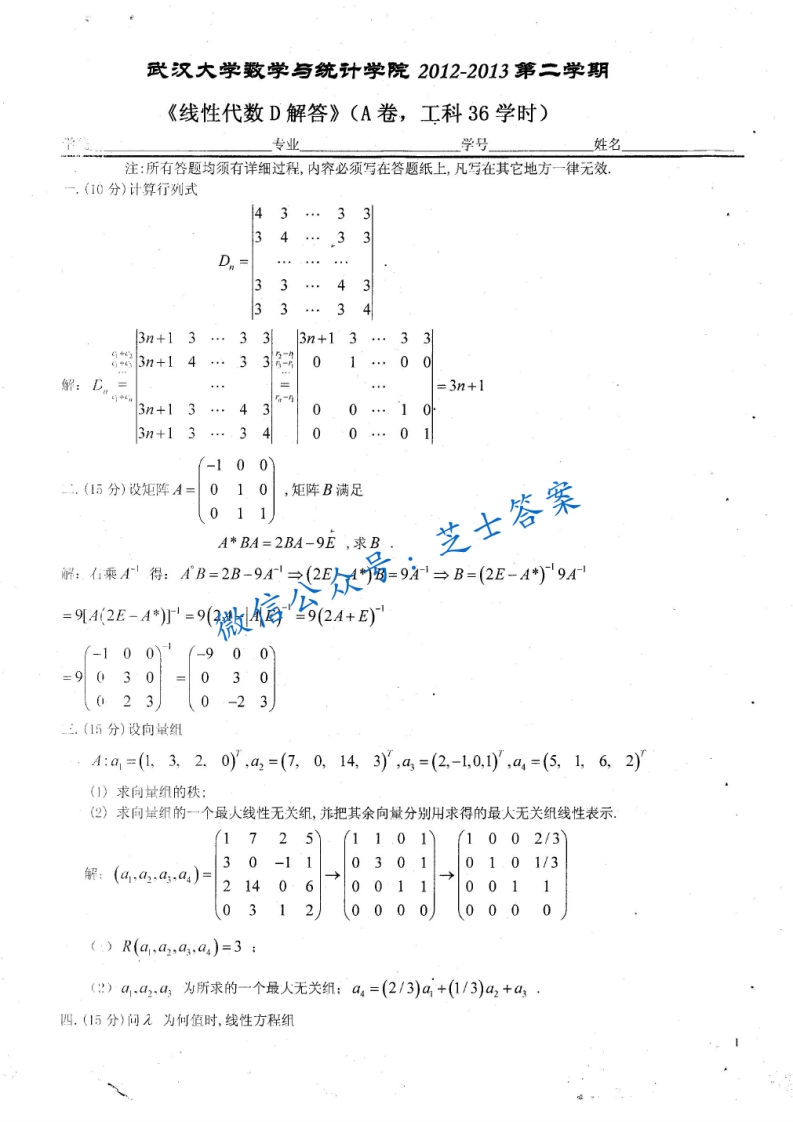 武汉大学《线性代数》2012-2013学年第二学期期末试卷猴哥6个月前发布关注私信1.19MB4页06758武汉大学《线性代数》2012-2013学年第二学期期末试卷此内容为付费资源,请付费后查看10积分年度会员免费月享会员免费登录购买付费资源已售 50 第1页 / 共4页 第2页 / 共4页 第3页 / 共4页 试读已结束,还剩1页,您可下载完整版后进行离线阅读 © 版权声明文章版权归作者所有,未经允许请勿转载。THE END《武汉大学》期中期末历年真题期末试卷 喜欢就支持一下吧点赞58赞赏 分享QQ空间微博QQ好友海报分享复制链接收藏