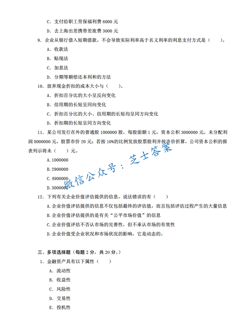 西南交通大学《财务管理学》2007-2008学年第一学期期末试卷猴哥6个月前发布关注私信2.04MB8页08534西南交通大学《财务管理学》2007-2008学年第一学期期末试卷此内容为付费资源,请付费后查看10积分年度会员免费月享会员免费登录购买付费资源已售 50 第1页 / 共8页 第2页 / 共8页 第3页 / 共8页 试读已结束,还剩5页,您可下载完整版后进行离线阅读 © 版权声明文章版权归作者所有,未经允许请勿转载。THE END《西南交通大学》期中期末历年真题期末试卷 喜欢就支持一下吧点赞34赞赏 分享QQ空间微博QQ好友海报分享复制链接收藏