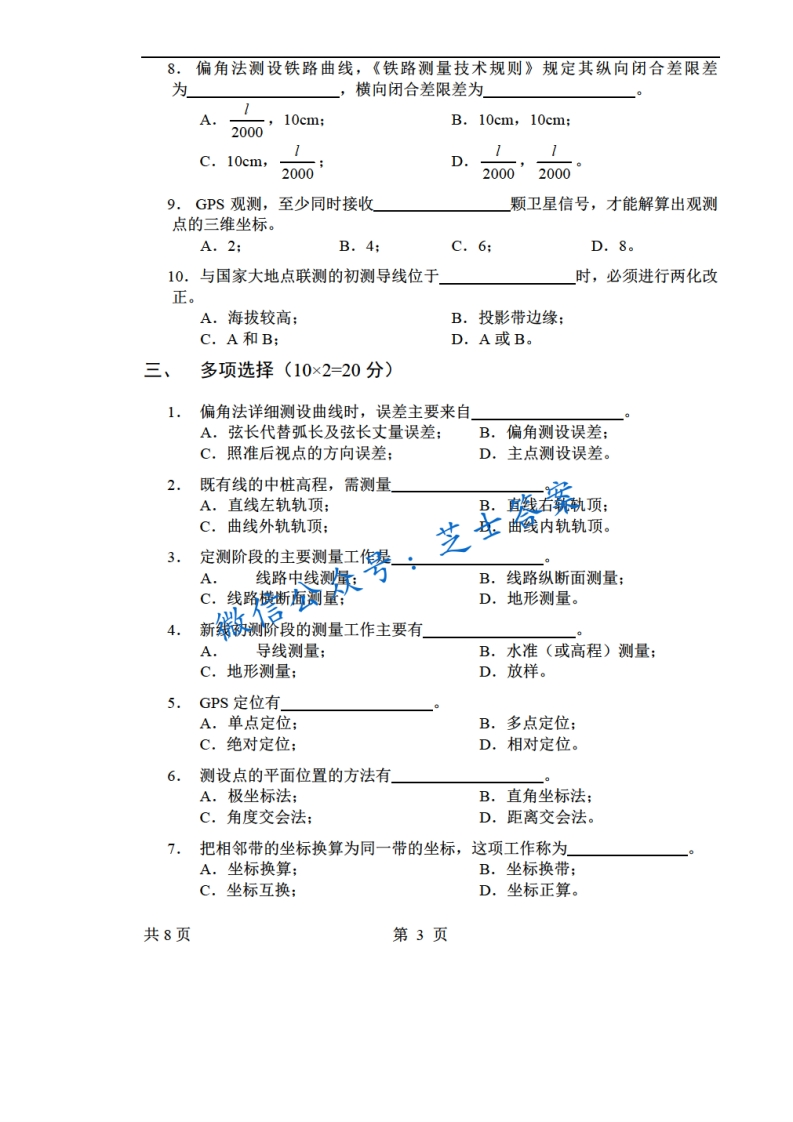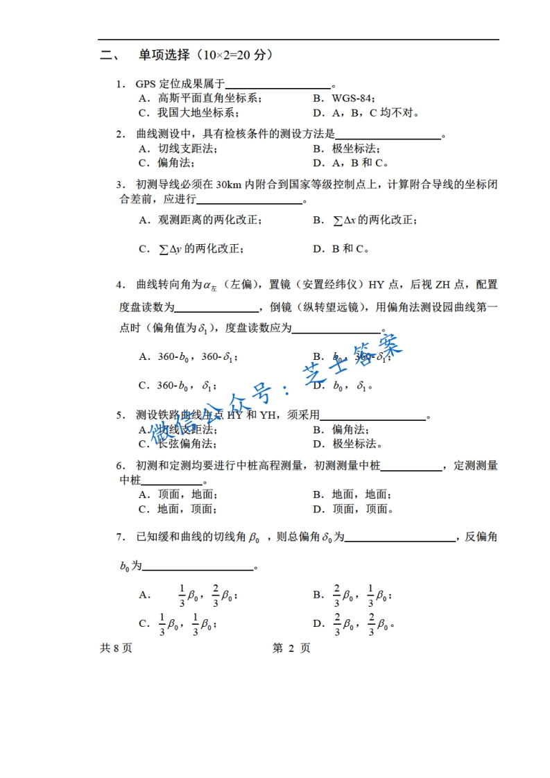 西南交通大学《工程测量》2006-2007学年第二学期期中试卷A卷猴哥6个月前发布关注私信1.15MB8页08557西南交通大学《工程测量》2006-2007学年第二学期期中试卷A卷此内容为付费资源,请付费后查看10积分年度会员免费月享会员免费登录购买付费资源已售 50 第1页 / 共8页 第2页 / 共8页 第3页 / 共8页 试读已结束,还剩5页,您可下载完整版后进行离线阅读 © 版权声明文章版权归作者所有,未经允许请勿转载。THE END《西南交通大学》期中期末历年真题期末试卷 喜欢就支持一下吧点赞57赞赏 分享QQ空间微博QQ好友海报分享复制链接收藏