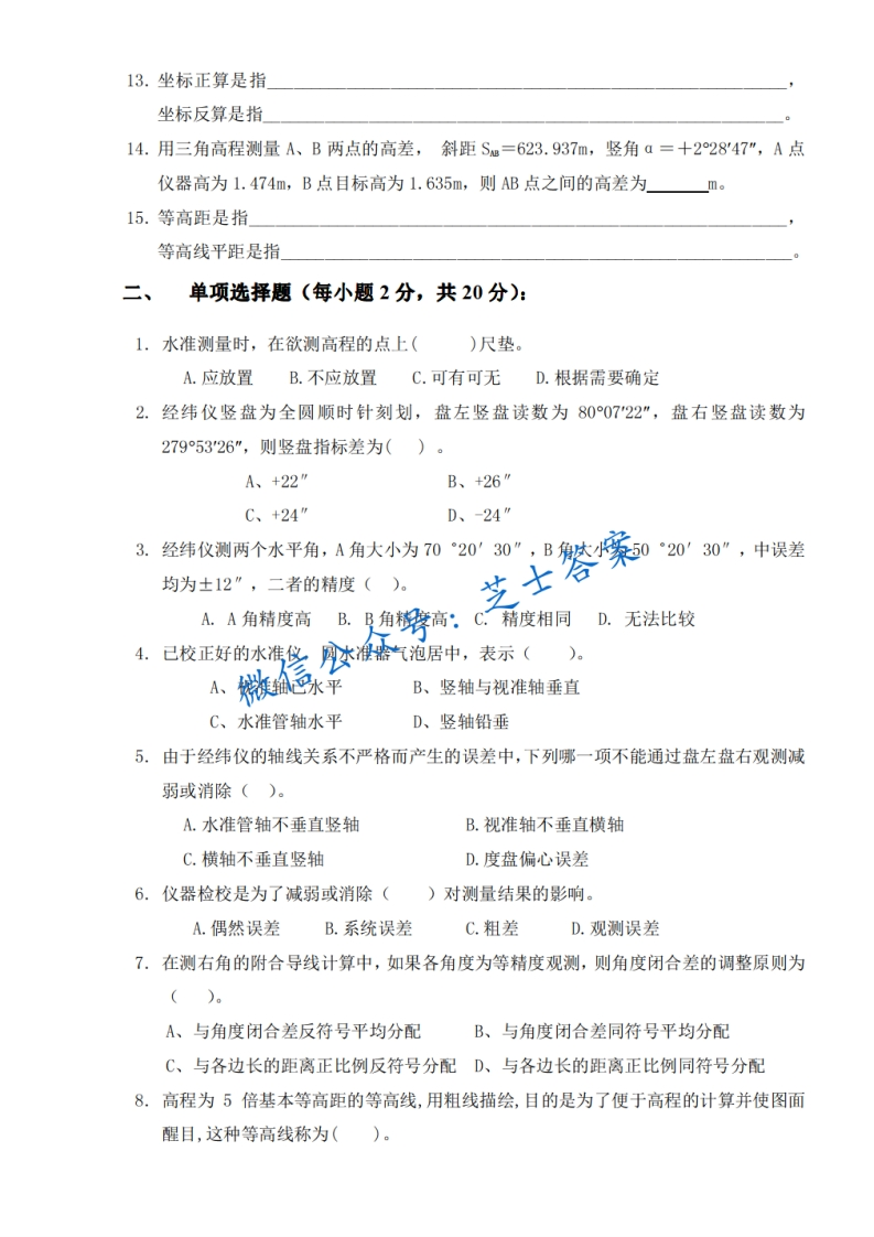 西南交通大学《工程测量》2009-2010学年第二学期期末试卷A卷猴哥6个月前发布关注私信0.80MB4页03226西南交通大学《工程测量》2009-2010学年第二学期期末试卷A卷此内容为付费资源,请付费后查看10积分年度会员免费月享会员免费登录购买付费资源已售 50 第1页 / 共4页 第2页 / 共4页 第3页 / 共4页 试读已结束,还剩1页,您可下载完整版后进行离线阅读 © 版权声明文章版权归作者所有,未经允许请勿转载。THE END《西南交通大学》期中期末历年真题期末试卷 喜欢就支持一下吧点赞26赞赏 分享QQ空间微博QQ好友海报分享复制链接收藏
