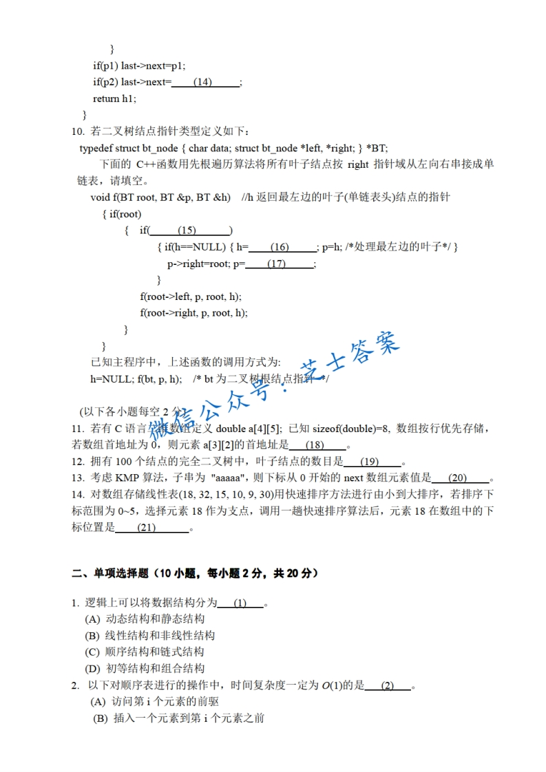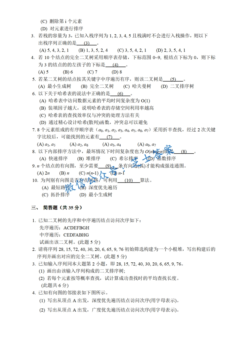 西南交通大学《数据结构》2009-2010学年第二学期期末试卷猴哥6个月前发布关注私信1.17MB5页09163西南交通大学《数据结构》2009-2010学年第二学期期末试卷此内容为付费资源,请付费后查看10积分年度会员免费月享会员免费登录购买付费资源已售 50 第1页 / 共5页 第2页 / 共5页 第3页 / 共5页 试读已结束,还剩2页,您可下载完整版后进行离线阅读 © 版权声明文章版权归作者所有,未经允许请勿转载。THE END《西南交通大学》期中期末历年真题期末试卷 喜欢就支持一下吧点赞63赞赏 分享QQ空间微博QQ好友海报分享复制链接收藏