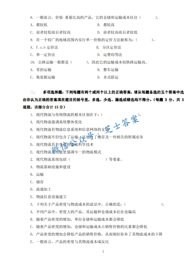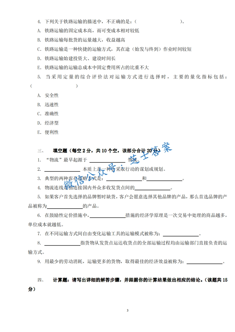 西南交通大学《现代物流管理》2012-2013学年第一学期期中试卷猴哥6个月前发布关注私信1.70MB8页06613西南交通大学《现代物流管理》2012-2013学年第一学期期中试卷此内容为付费资源,请付费后查看10积分年度会员免费月享会员免费登录购买付费资源已售 50 第1页 / 共8页 第2页 / 共8页 第3页 / 共8页 试读已结束,还剩5页,您可下载完整版后进行离线阅读 © 版权声明文章版权归作者所有,未经允许请勿转载。THE END《西南交通大学》期中期末历年真题期末试卷 喜欢就支持一下吧点赞13赞赏 分享QQ空间微博QQ好友海报分享复制链接收藏
