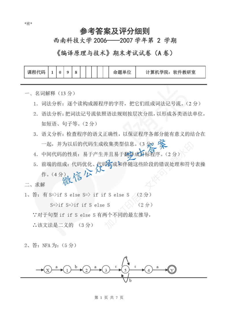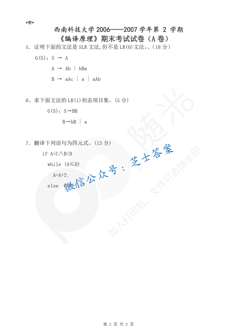 西南科技大学《编译原理》2006-2007学年第二学期期末试卷A卷猴哥6个月前发布关注私信1.21MB9页09724西南科技大学《编译原理》2006-2007学年第二学期期末试卷A卷此内容为付费资源,请付费后查看10积分年度会员免费月享会员免费登录购买付费资源已售 50 第1页 / 共9页 第2页 / 共9页 第3页 / 共9页 试读已结束,还剩6页,您可下载完整版后进行离线阅读 © 版权声明文章版权归作者所有,未经允许请勿转载。THE END《西南科技大学》期中期末历年真题期末试卷 喜欢就支持一下吧点赞24赞赏 分享QQ空间微博QQ好友海报分享复制链接收藏