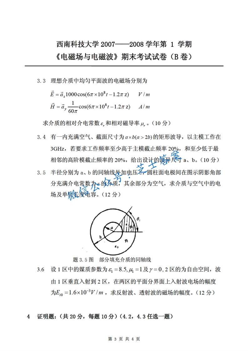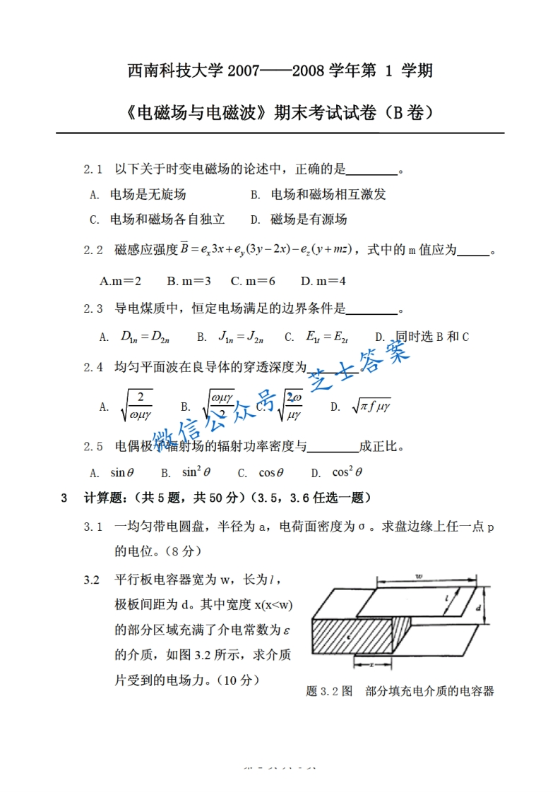西南科技大学《电磁场理论》2007-2008学年第一学期期末试卷B卷-学习资源网 - 分享优质学习资料