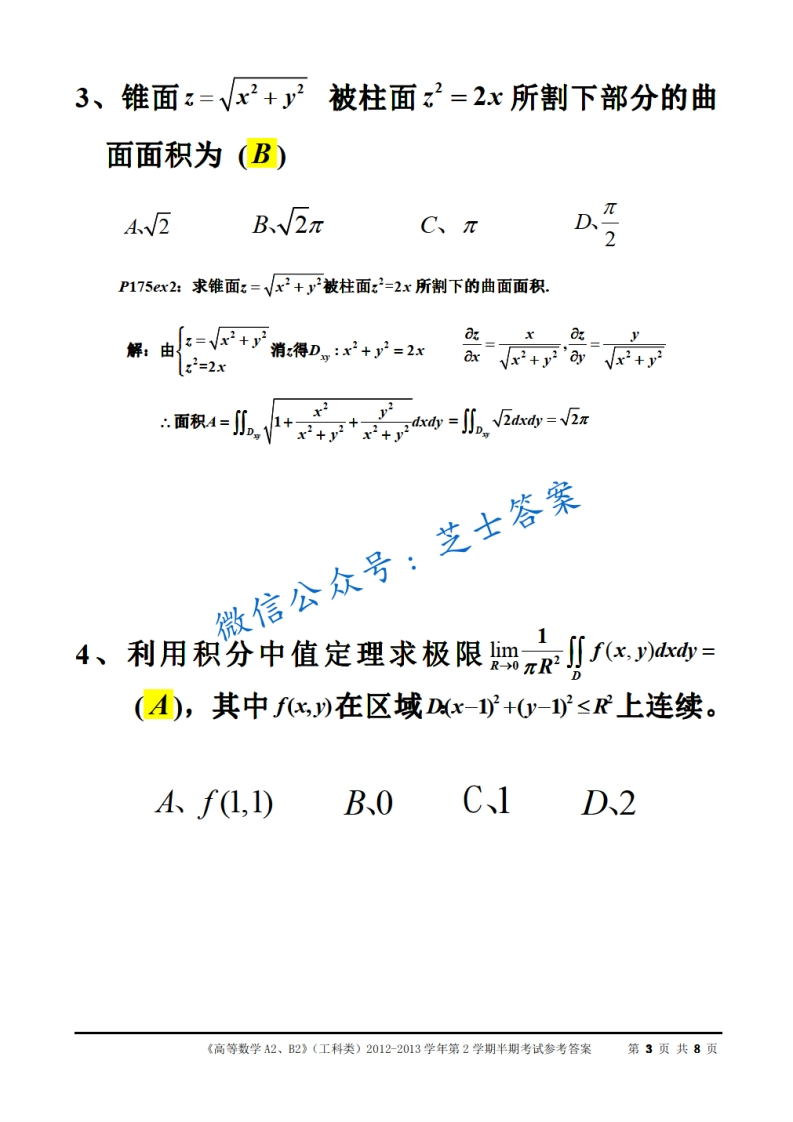 西南科技大学《高等数学下》2012-2013学年第二学期期中试卷-学习资源网 - 分享优质学习资料