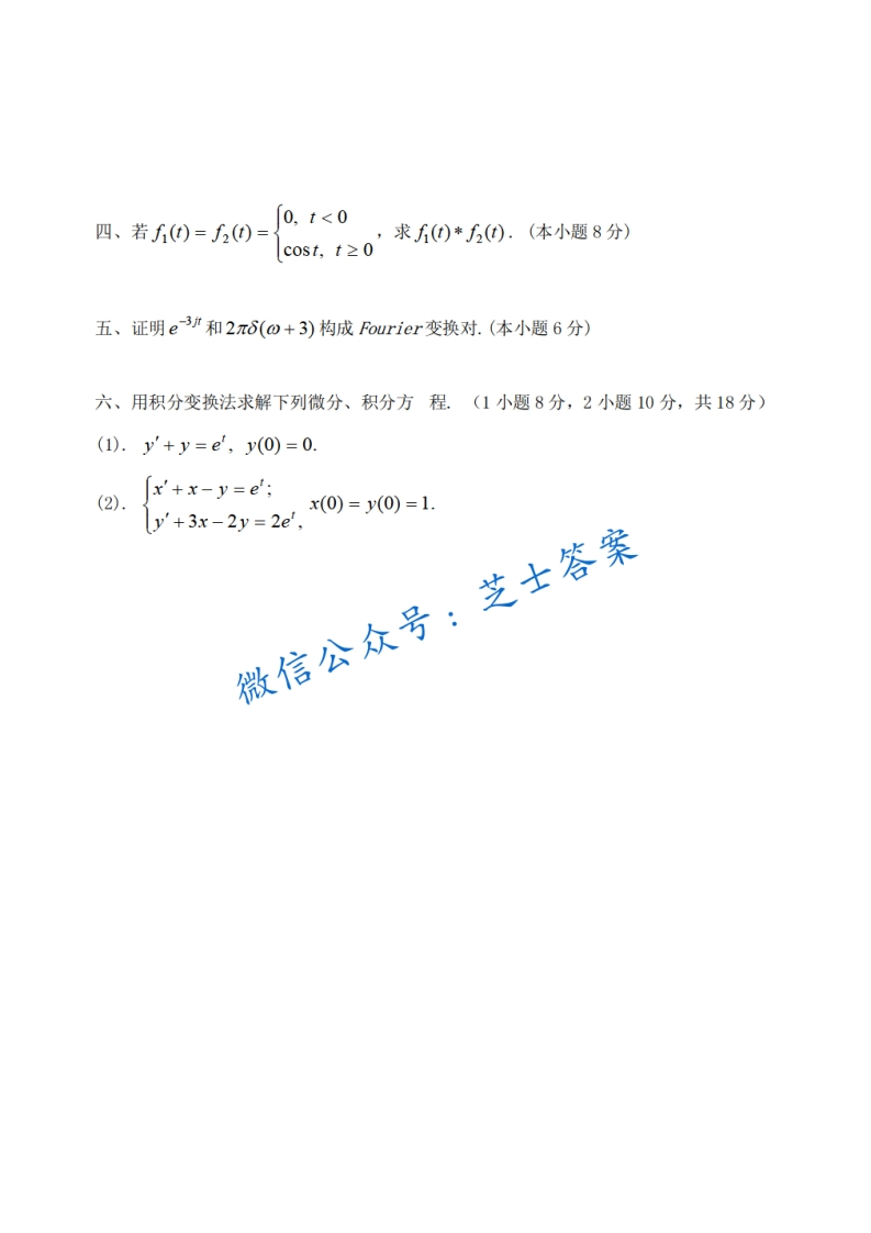 西南科技大学《积分变换》2009-2010学年第一学期期末试卷B卷-学习资源网 - 分享优质学习资料