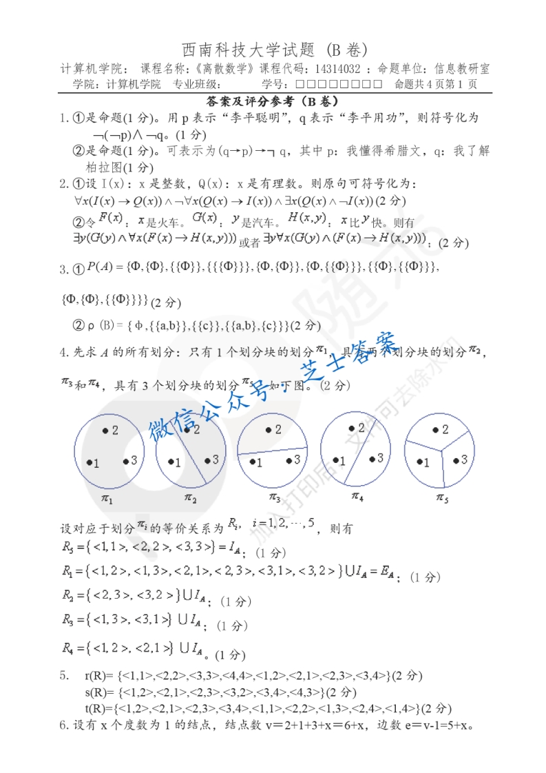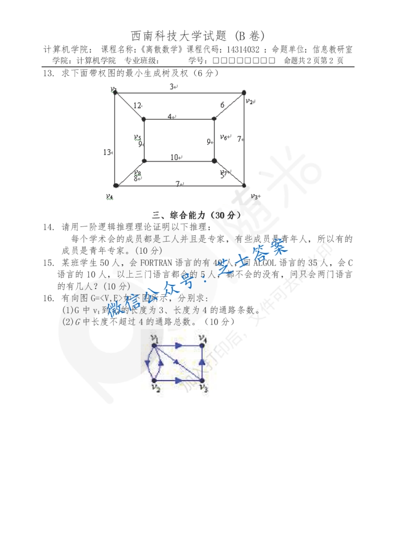 西南科技大学《离散数学》2005-2006学年第二学期期末试卷B卷-学习资源网 - 分享优质学习资料