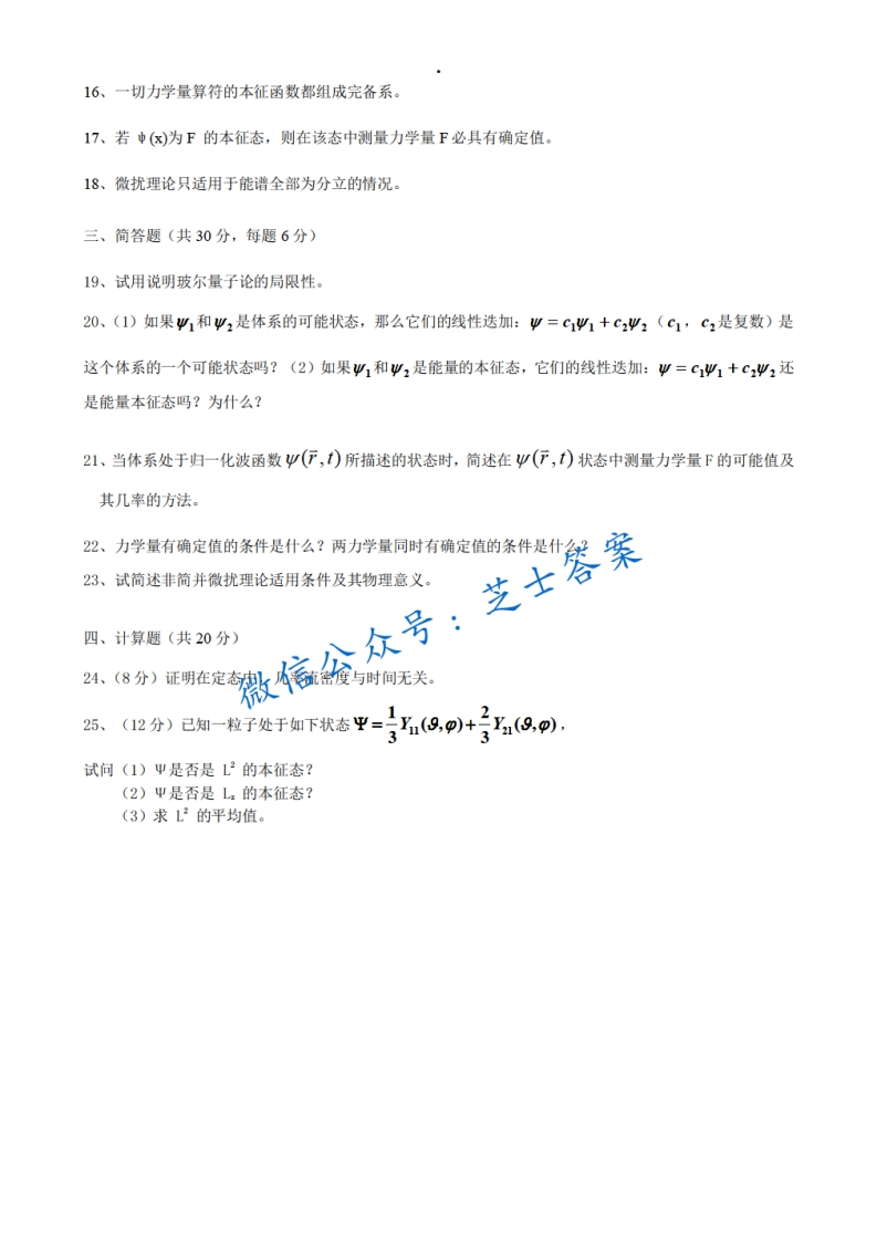 西南科技大学《量子力学》2011-2012学年第二学期期末试卷A卷猴哥6个月前发布关注私信0.39MB2页09926西南科技大学《量子力学》2011-2012学年第二学期期末试卷A卷此内容为付费资源,请付费后查看10积分年度会员免费月享会员免费登录购买付费资源已售 50 第1页 / 共2页 第2页 / 共2页 已完成全部阅读,共2页 © 版权声明文章版权归作者所有,未经允许请勿转载。THE END《西南科技大学》期中期末历年真题期末试卷 喜欢就支持一下吧点赞26赞赏 分享QQ空间微博QQ好友海报分享复制链接收藏