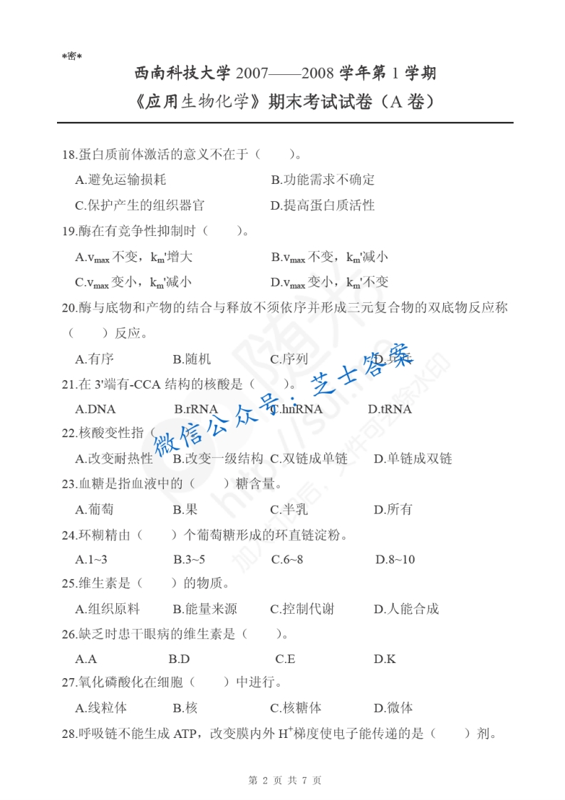 西南科技大学《生物化学》2007-2008学年第一学期期末试卷A卷猴哥6个月前发布关注私信1.84MB10页08247西南科技大学《生物化学》2007-2008学年第一学期期末试卷A卷此内容为付费资源,请付费后查看10积分年度会员免费月享会员免费登录购买付费资源已售 50 第1页 / 共10页 第2页 / 共10页 第3页 / 共10页 试读已结束,还剩7页,您可下载完整版后进行离线阅读 © 版权声明文章版权归作者所有,未经允许请勿转载。THE END《西南科技大学》期中期末历年真题期末试卷 喜欢就支持一下吧点赞47赞赏 分享QQ空间微博QQ好友海报分享复制链接收藏
