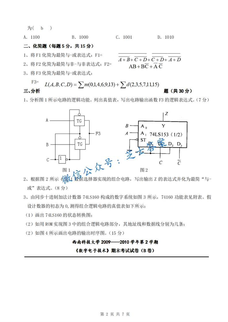西南科技大学《数字电子技术》2009-2010学年第二学期期末试卷B卷猴哥6个月前发布关注私信1.22MB7页03563西南科技大学《数字电子技术》2009-2010学年第二学期期末试卷B卷此内容为付费资源,请付费后查看10积分年度会员免费月享会员免费登录购买付费资源已售 50 第1页 / 共7页 第2页 / 共7页 第3页 / 共7页 试读已结束,还剩4页,您可下载完整版后进行离线阅读 © 版权声明文章版权归作者所有,未经允许请勿转载。THE END《西南科技大学》期中期末历年真题期末试卷 喜欢就支持一下吧点赞63赞赏 分享QQ空间微博QQ好友海报分享复制链接收藏