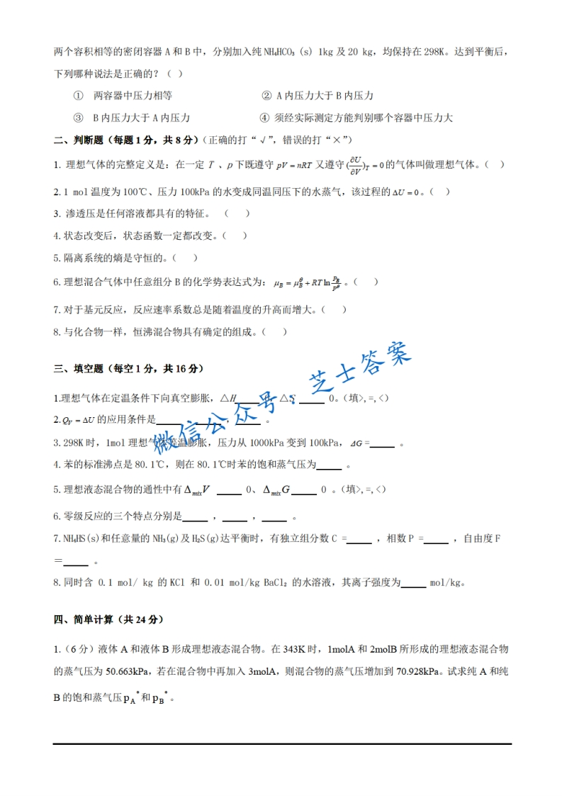西南科技大学《物理化学》2010-2011学年期末试卷B卷猴哥6个月前发布关注私信0.71MB4页07552西南科技大学《物理化学》2010-2011学年期末试卷B卷此内容为付费资源,请付费后查看10积分年度会员免费月享会员免费登录购买付费资源已售 50 第1页 / 共4页 第2页 / 共4页 第3页 / 共4页 试读已结束,还剩1页,您可下载完整版后进行离线阅读 © 版权声明文章版权归作者所有,未经允许请勿转载。THE END《西南科技大学》期中期末历年真题期末试卷 喜欢就支持一下吧点赞52赞赏 分享QQ空间微博QQ好友海报分享复制链接收藏