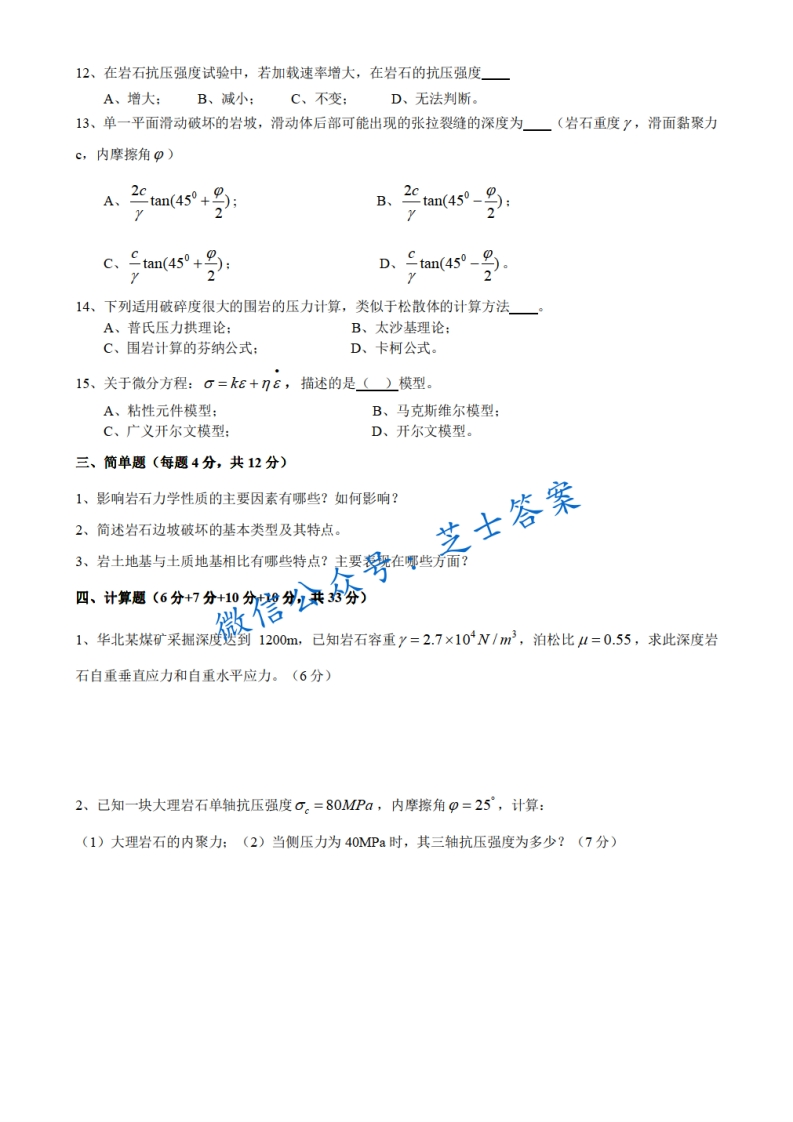 西南科技大学《岩石力学》2012-2013学年第一学期期末试卷B卷猴哥6个月前发布关注私信0.74MB4页06321西南科技大学《岩石力学》2012-2013学年第一学期期末试卷B卷此内容为付费资源,请付费后查看10积分年度会员免费月享会员免费登录购买付费资源已售 50 第1页 / 共4页 第2页 / 共4页 第3页 / 共4页 试读已结束,还剩1页,您可下载完整版后进行离线阅读 © 版权声明文章版权归作者所有,未经允许请勿转载。THE END《西南科技大学》期中期末历年真题期末试卷 喜欢就支持一下吧点赞21赞赏 分享QQ空间微博QQ好友海报分享复制链接收藏