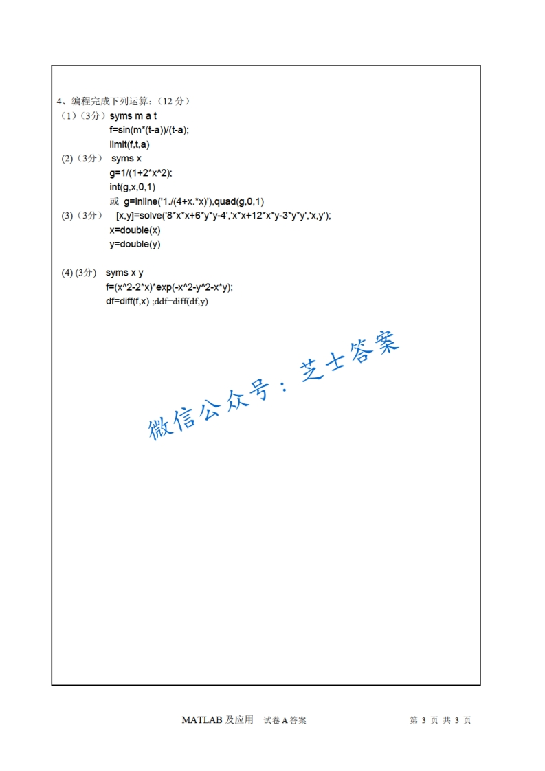烟台大学《MATLAB程序设计与应用》2010-2011学年第二学期期末试卷B卷猴哥6个月前发布关注私信0.40MB3页07648烟台大学《MATLAB程序设计与应用》2010-2011学年第二学期期末试卷B卷此内容为付费资源,请付费后查看10积分年度会员免费月享会员免费登录购买付费资源已售 50 第1页 / 共3页 第2页 / 共3页 第3页 / 共3页 已完成全部阅读,共3页 © 版权声明文章版权归作者所有,未经允许请勿转载。THE END《烟台大学》期中期末历年真题期末试卷 喜欢就支持一下吧点赞48赞赏 分享QQ空间微博QQ好友海报分享复制链接收藏