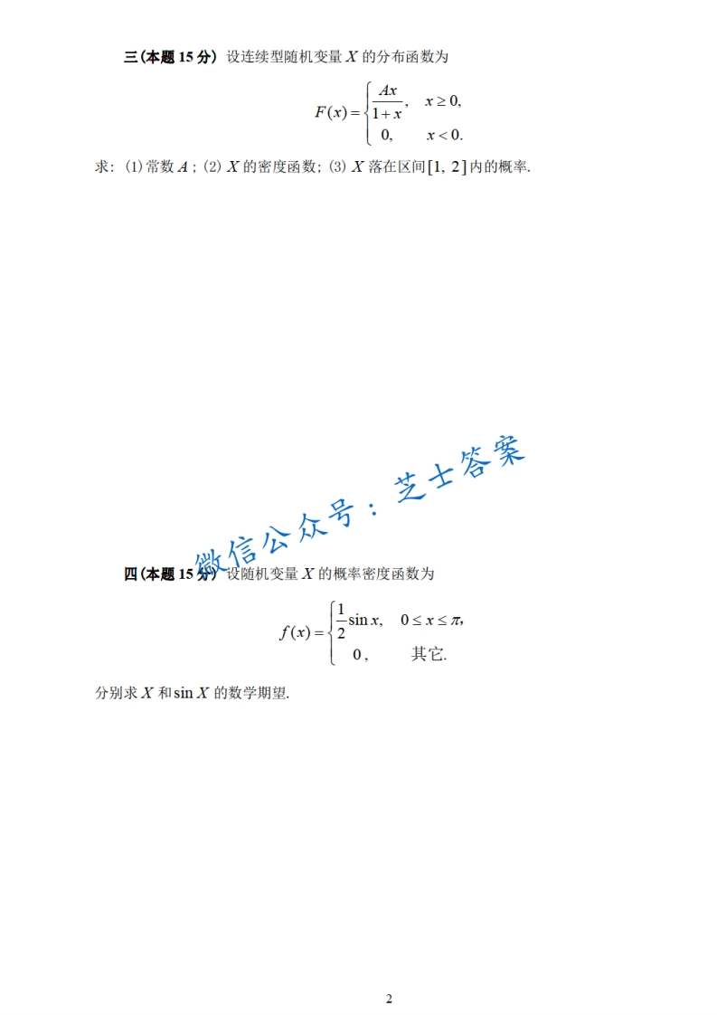 烟台大学《概率论与数理统计》2006-2007学年第二学期期末试卷A卷猴哥6个月前发布关注私信0.76MB6页05011烟台大学《概率论与数理统计》2006-2007学年第二学期期末试卷A卷此内容为付费资源,请付费后查看10积分年度会员免费月享会员免费登录购买付费资源已售 50 第1页 / 共6页 第2页 / 共6页 第3页 / 共6页 试读已结束,还剩3页,您可下载完整版后进行离线阅读 © 版权声明文章版权归作者所有,未经允许请勿转载。THE END《烟台大学》期中期末历年真题期末试卷 喜欢就支持一下吧点赞11赞赏 分享QQ空间微博QQ好友海报分享复制链接收藏