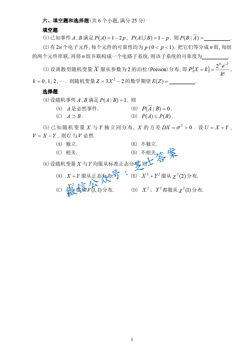 烟台大学《概率论与数理统计》2010-2011学年第二学期期末试卷A卷猴哥6个月前发布关注私信0.67MB5页05720烟台大学《概率论与数理统计》2010-2011学年第二学期期末试卷A卷此内容为付费资源,请付费后查看10积分年度会员免费月享会员免费登录购买付费资源已售 50 第1页 / 共5页 第2页 / 共5页 第3页 / 共5页 试读已结束,还剩2页,您可下载完整版后进行离线阅读 © 版权声明文章版权归作者所有,未经允许请勿转载。THE END《烟台大学》期中期末历年真题期末试卷 喜欢就支持一下吧点赞20赞赏 分享QQ空间微博QQ好友海报分享复制链接收藏