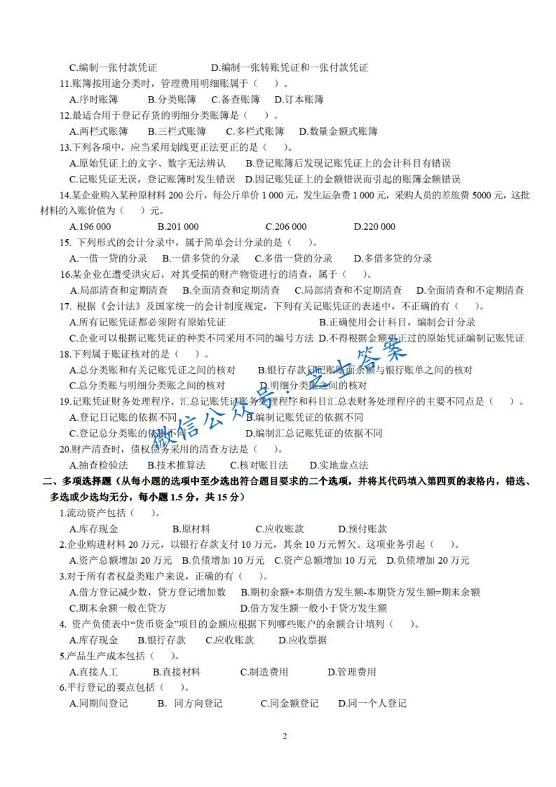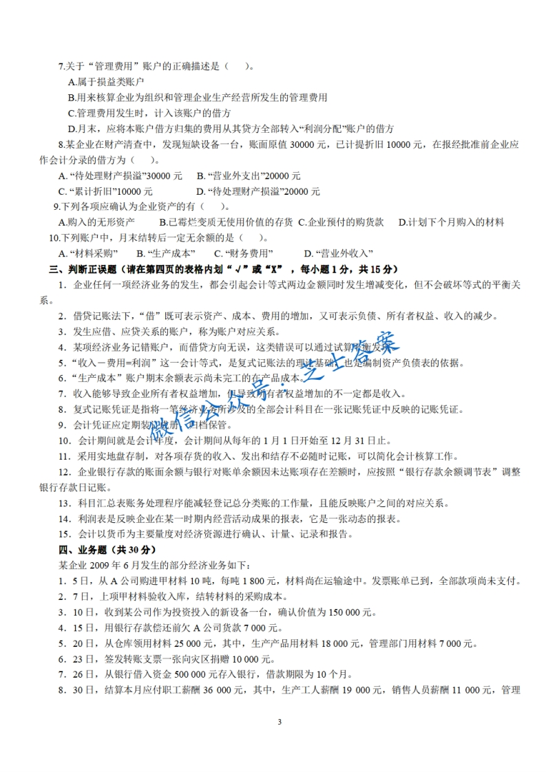 烟台大学《会计学原理》2009-2010学年第一学期期末试卷A卷猴哥6个月前发布关注私信1.82MB7页06364烟台大学《会计学原理》2009-2010学年第一学期期末试卷A卷此内容为付费资源,请付费后查看10积分年度会员免费月享会员免费登录购买付费资源已售 50 第1页 / 共7页 第2页 / 共7页 第3页 / 共7页 试读已结束,还剩4页,您可下载完整版后进行离线阅读 © 版权声明文章版权归作者所有,未经允许请勿转载。THE END《烟台大学》期中期末历年真题期末试卷 喜欢就支持一下吧点赞64赞赏 分享QQ空间微博QQ好友海报分享复制链接收藏