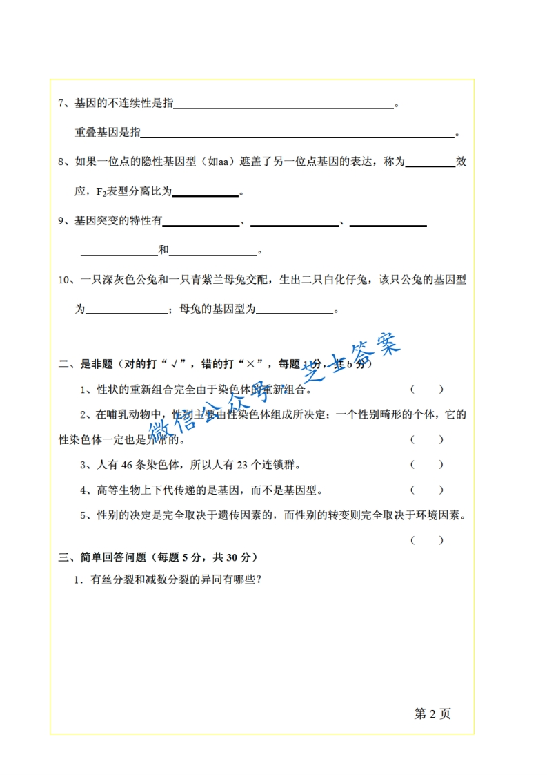 扬州大学《动物遗传学》2006-2007学年第二学期期末试卷A卷猴哥6个月前发布关注私信0.86MB6页05858扬州大学《动物遗传学》2006-2007学年第二学期期末试卷A卷此内容为付费资源,请付费后查看10积分年度会员免费月享会员免费登录购买付费资源已售 50 第1页 / 共6页 第2页 / 共6页 第3页 / 共6页 试读已结束,还剩3页,您可下载完整版后进行离线阅读 © 版权声明文章版权归作者所有,未经允许请勿转载。THE END《扬州大学》期中期末历年真题期末试卷 喜欢就支持一下吧点赞58赞赏 分享QQ空间微博QQ好友海报分享复制链接收藏