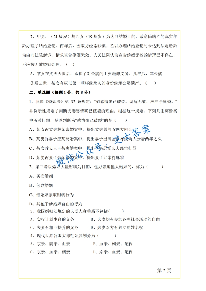 扬州大学《婚姻家庭法学》2009-2010学年第一学期期末试卷B卷猴哥6个月前发布关注私信1.83MB7页03063扬州大学《婚姻家庭法学》2009-2010学年第一学期期末试卷B卷此内容为付费资源,请付费后查看10积分年度会员免费月享会员免费登录购买付费资源已售 50 第1页 / 共7页 第2页 / 共7页 第3页 / 共7页 试读已结束,还剩4页,您可下载完整版后进行离线阅读 © 版权声明文章版权归作者所有,未经允许请勿转载。THE END《扬州大学》期中期末历年真题期末试卷 喜欢就支持一下吧点赞63赞赏 分享QQ空间微博QQ好友海报分享复制链接收藏