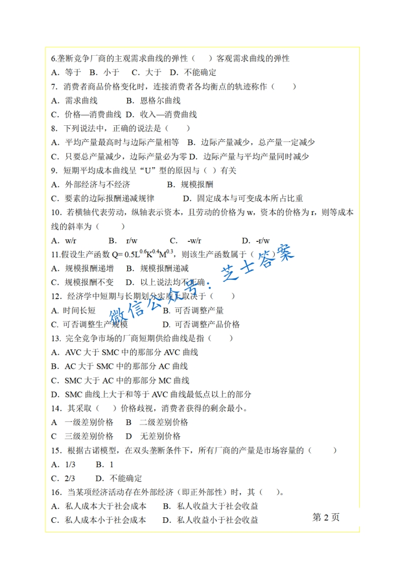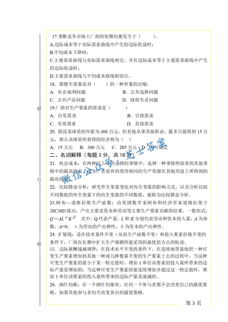 扬州大学《微观经济学》2010-2011学年第一学期期末试卷A卷-学习资源网 - 分享优质学习资料