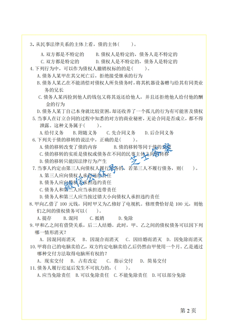 扬州大学《债权法》2008-2009学年第二学期期末试卷A卷猴哥6个月前发布关注私信1.94MB7页07153扬州大学《债权法》2008-2009学年第二学期期末试卷A卷此内容为付费资源,请付费后查看10积分年度会员免费月享会员免费登录购买付费资源已售 50 第1页 / 共7页 第2页 / 共7页 第3页 / 共7页 试读已结束,还剩4页,您可下载完整版后进行离线阅读 © 版权声明文章版权归作者所有,未经允许请勿转载。THE END《扬州大学》期中期末历年真题期末试卷 喜欢就支持一下吧点赞53赞赏 分享QQ空间微博QQ好友海报分享复制链接收藏