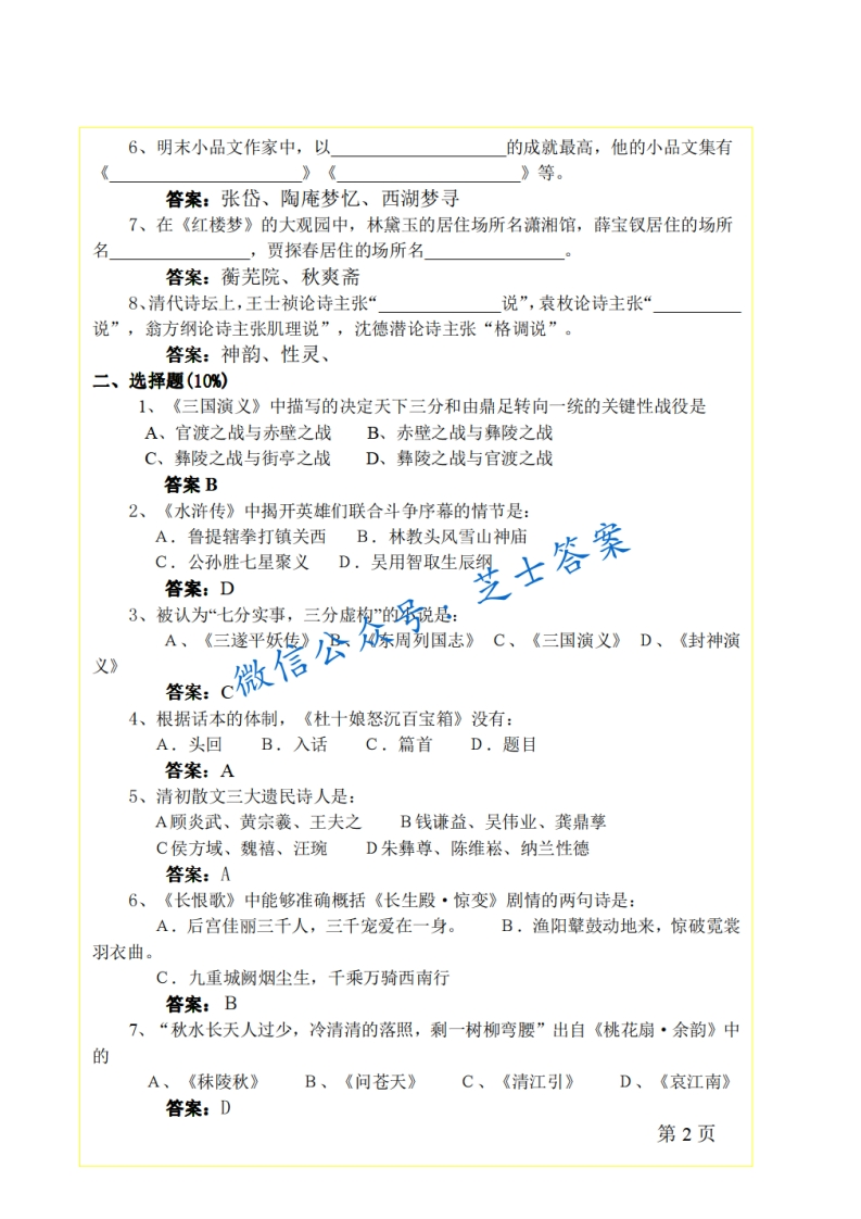 扬州大学《中国古代文学》2004-2005学年第二学期期末试卷A卷猴哥6个月前发布关注私信1.64MB10页09812扬州大学《中国古代文学》2004-2005学年第二学期期末试卷A卷此内容为付费资源,请付费后查看10积分年度会员免费月享会员免费登录购买付费资源已售 50 第1页 / 共10页 第2页 / 共10页 第3页 / 共10页 试读已结束,还剩7页,您可下载完整版后进行离线阅读 © 版权声明文章版权归作者所有,未经允许请勿转载。THE END《扬州大学》期中期末历年真题期末试卷 喜欢就支持一下吧点赞12赞赏 分享QQ空间微博QQ好友海报分享复制链接收藏