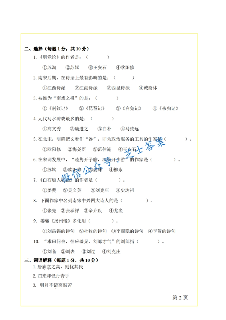 扬州大学《中国古代文学》2004-2005学年第一学期期末试卷A卷-学习资源网 - 分享优质学习资料