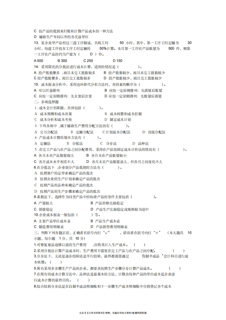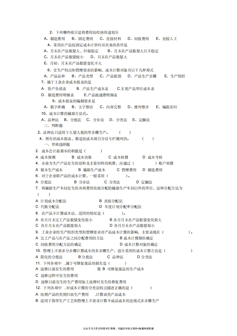 成本会计试题及答案猴哥6个月前发布关注私信0.12MB8页09535成本会计试题及答案此内容为免费资源,请登录后查看¥0 登录查看免费资源 第1页 / 共8页 第2页 / 共8页 第3页 / 共8页 该文档为免费文档,您可直接下载完整版进行阅读 © 版权声明文章版权归作者所有,未经允许请勿转载。THE END《成本会计》学习资料合集期末复习 喜欢就支持一下吧点赞35赞赏 分享QQ空间微博QQ好友海报分享复制链接收藏