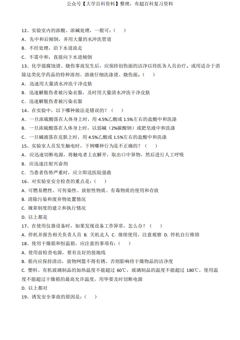 化学实验室安全考试试题-及答案猴哥6个月前发布关注私信0.28MB5页03147化学实验室安全考试试题-及答案此内容为免费资源,请登录后查看¥0 登录查看免费资源 第1页 / 共5页 第2页 / 共5页 第3页 / 共5页 该文档为免费文档,您可直接下载完整版进行阅读 © 版权声明文章版权归作者所有,未经允许请勿转载。THE END《大学化学实验》学习资料合集期末复习 喜欢就支持一下吧点赞47赞赏 分享QQ空间微博QQ好友海报分享复制链接收藏