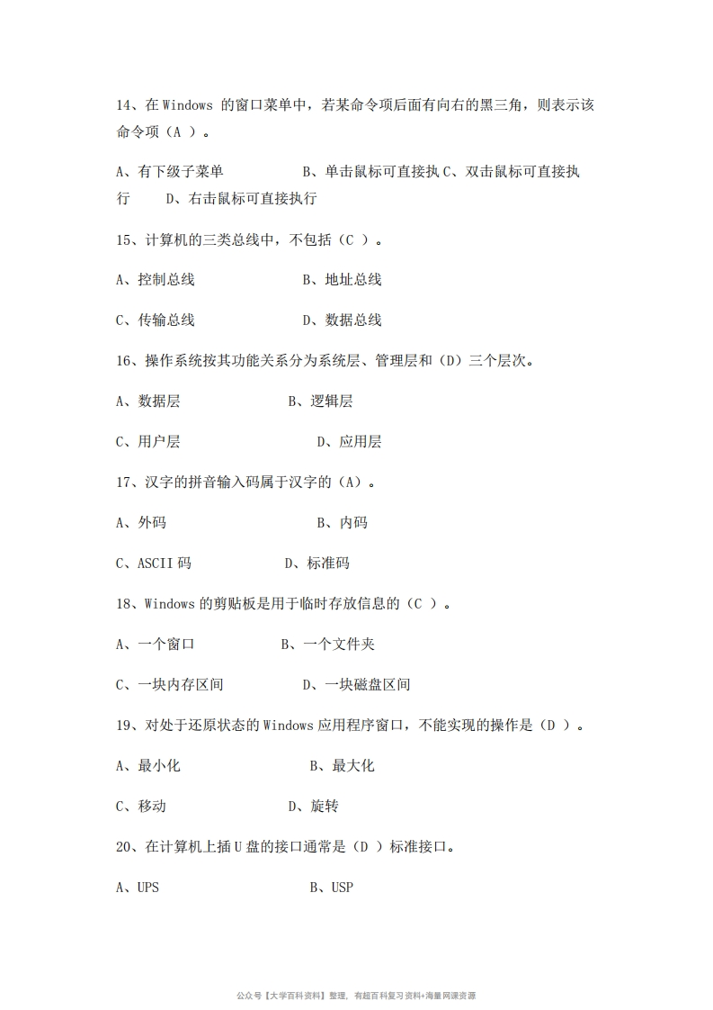 大学计算机基础试题及答案(完整版)猴哥6个月前发布关注私信77.33KB7页09359大学计算机基础试题及答案(完整版)此内容为免费资源,请登录后查看¥0 登录查看免费资源 第1页 / 共7页 第2页 / 共7页 第3页 / 共7页 该文档为免费文档,您可直接下载完整版进行阅读 © 版权声明文章版权归作者所有,未经允许请勿转载。THE END《大学计算机基础》学习资料合集《计算机基础》学习资料合集期末复习 喜欢就支持一下吧点赞59赞赏 分享QQ空间微博QQ好友海报分享复制链接收藏