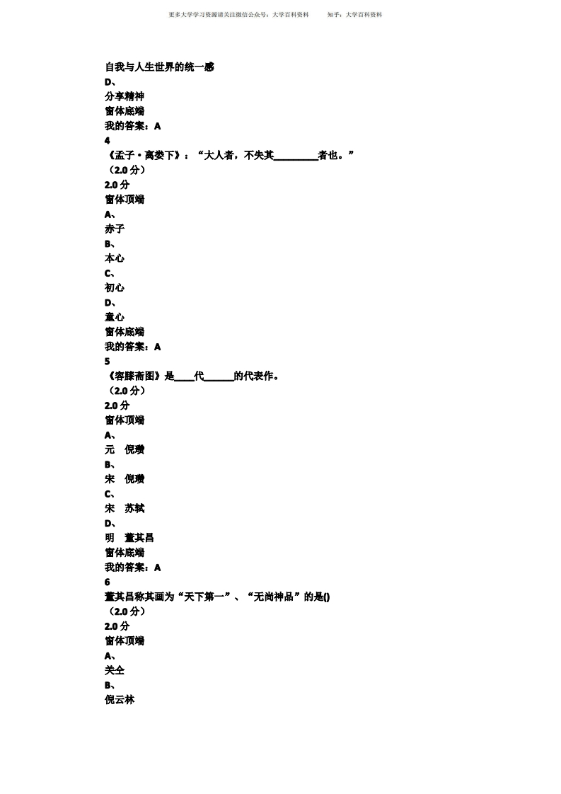 大学美育考试题库猴哥6个月前发布关注私信0.41MB16页03352大学美育考试题库此内容为免费资源,请登录后查看¥0 登录查看免费资源 第1页 / 共16页 第2页 / 共16页 第3页 / 共16页 该文档为免费文档,您可直接下载完整版进行阅读 © 版权声明文章版权归作者所有,未经允许请勿转载。THE END《大学美育》学习资料合集期末复习 喜欢就支持一下吧点赞52赞赏 分享QQ空间微博QQ好友海报分享复制链接收藏