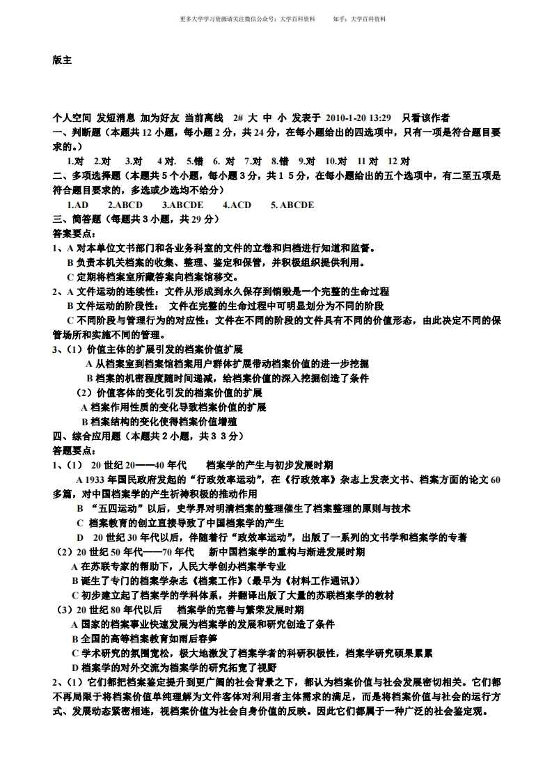 《档案学》期末考试试题及参考答案猴哥6个月前发布关注私信0.15MB3页08649《档案学》期末考试试题及参考答案此内容为免费资源,请登录后查看¥0 登录查看免费资源 第1页 / 共3页 第2页 / 共3页 第3页 / 共3页 已完成全部阅读,共3页 © 版权声明文章版权归作者所有,未经允许请勿转载。THE END《档案学》学习资料合集期末复习 喜欢就支持一下吧点赞49赞赏 分享QQ空间微博QQ好友海报分享复制链接收藏