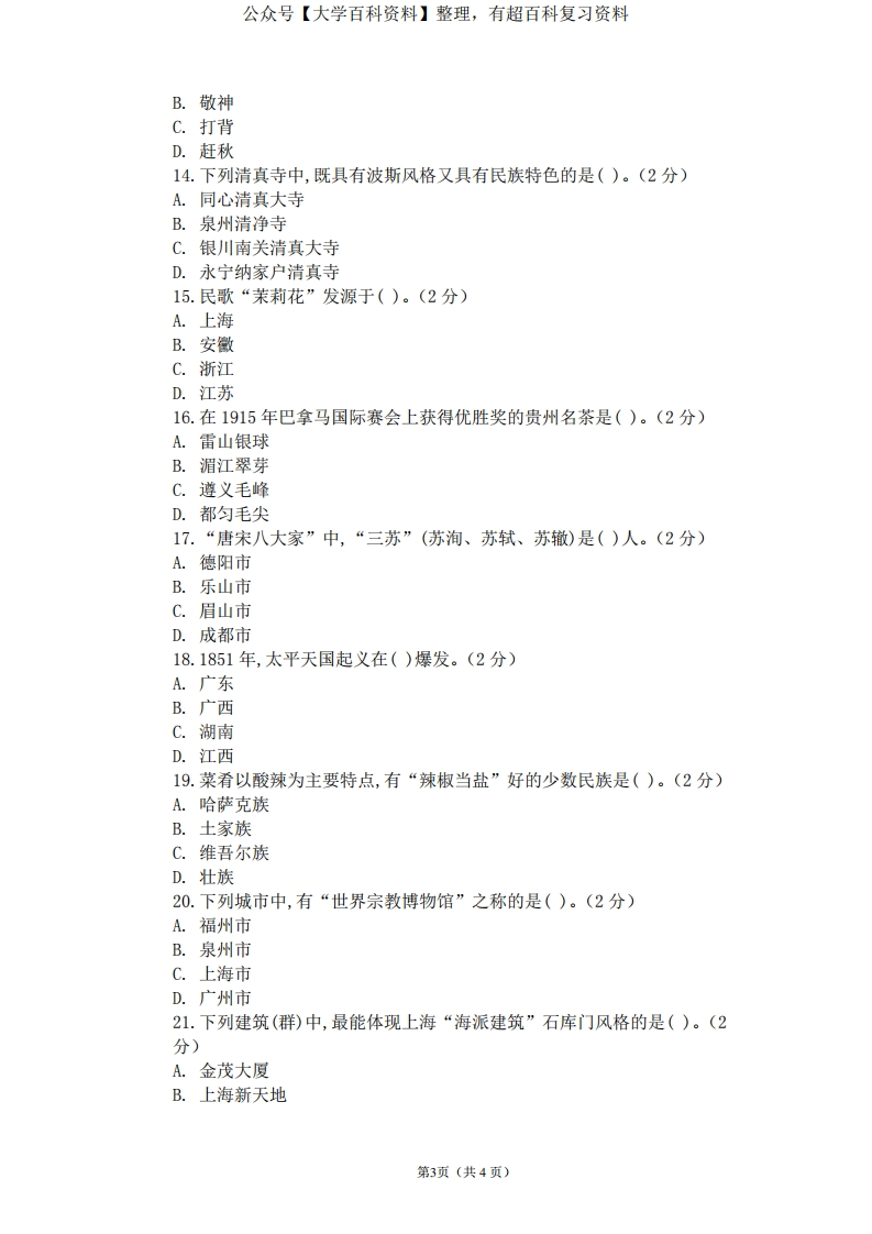 《地方导游基础知识》期末考试试卷及答案(3卷)猴哥6个月前发布关注私信0.28MB8页06031《地方导游基础知识》期末考试试卷及答案(3卷)此内容为免费资源,请登录后查看¥0 登录查看免费资源 第1页 / 共8页 第2页 / 共8页 第3页 / 共8页 该文档为免费文档,您可直接下载完整版进行阅读 © 版权声明文章版权归作者所有,未经允许请勿转载。THE END《地方导游基础知识》学习资料合集期末复习 喜欢就支持一下吧点赞31赞赏 分享QQ空间微博QQ好友海报分享复制链接收藏