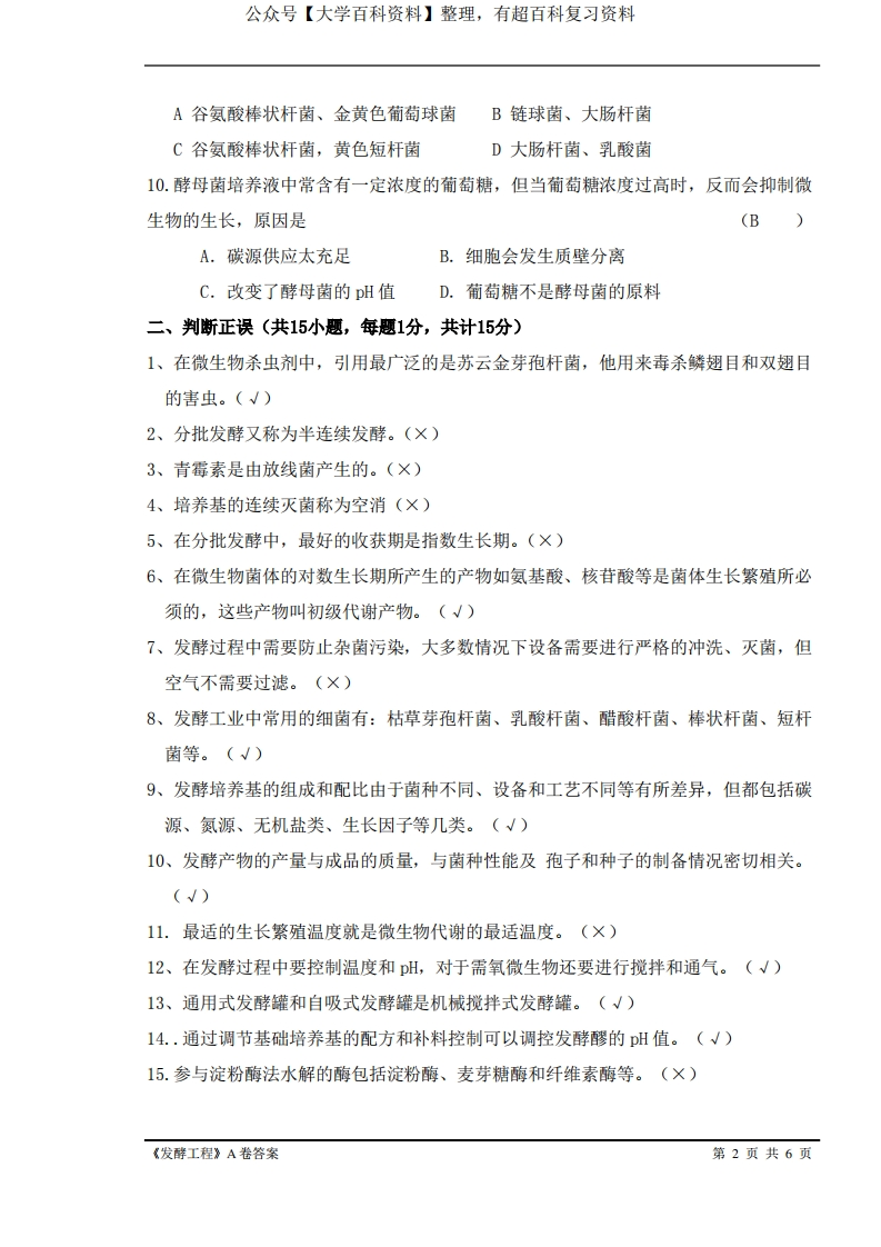 发酵工程期末试卷A卷答案猴哥6个月前发布关注私信0.30MB6页03033发酵工程期末试卷A卷答案此内容为免费资源,请登录后查看¥0 登录查看免费资源 第1页 / 共6页 第2页 / 共6页 第3页 / 共6页 该文档为免费文档,您可直接下载完整版进行阅读 © 版权声明文章版权归作者所有,未经允许请勿转载。THE END《发酵工程》学习资料合集期末复习 喜欢就支持一下吧点赞33赞赏 分享QQ空间微博QQ好友海报分享复制链接收藏