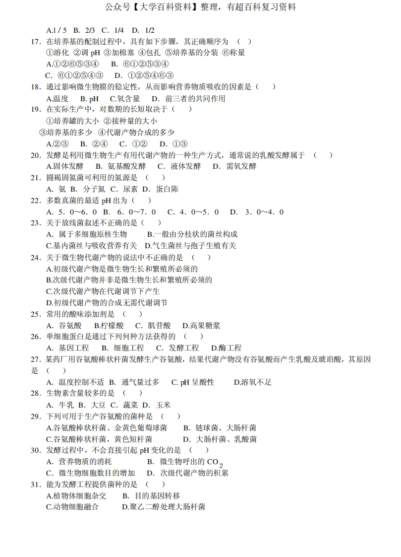 发酵工程试卷及答案重要猴哥6个月前发布关注私信0.38MB6页04749发酵工程试卷及答案重要此内容为免费资源,请登录后查看¥0 登录查看免费资源 第1页 / 共6页 第2页 / 共6页 第3页 / 共6页 该文档为免费文档,您可直接下载完整版进行阅读 © 版权声明文章版权归作者所有,未经允许请勿转载。THE END《发酵工程》学习资料合集期末复习 喜欢就支持一下吧点赞49赞赏 分享QQ空间微博QQ好友海报分享复制链接收藏